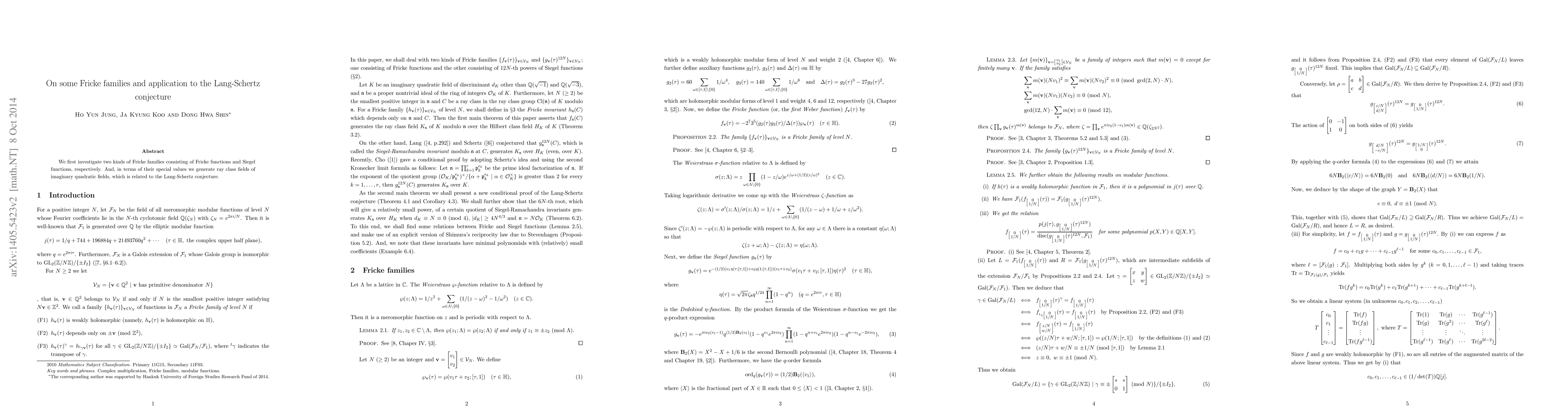 Summary: This paper explores two types of Fricke families—Fricke functions and Siegel functions—and uses their special values to generate ray class fields. These findings contribute to the investigation of the Lang-Schertz conjecture in number theory.