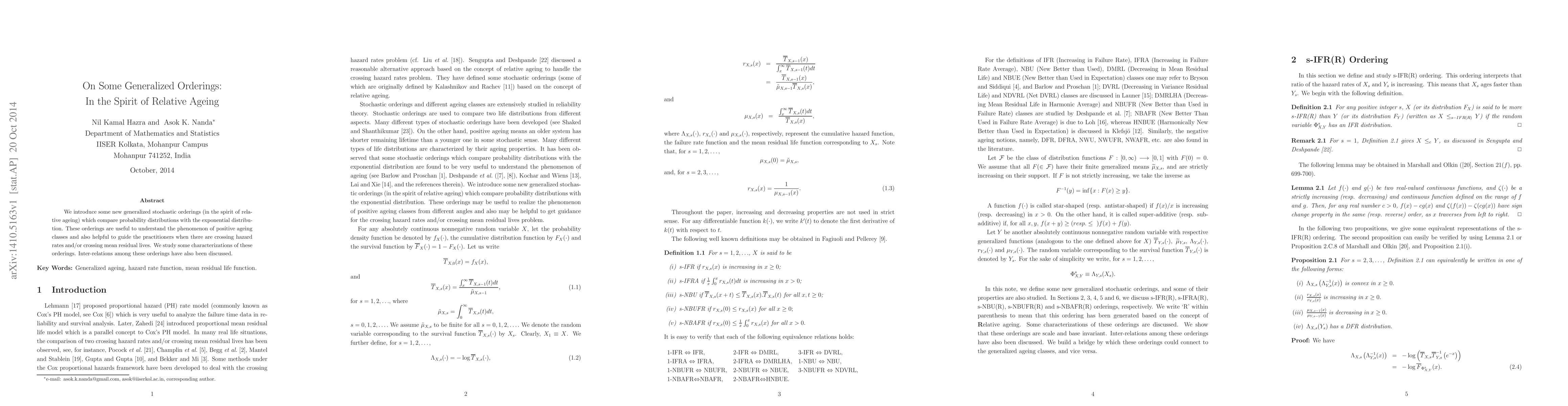 We introduce some new generalized stochastic orderings (in the spirit of relative ageing) which compare probability distributions with the exponential distribution. These orderings are useful to understand the phenomenon of positive ageing classes and also helpful to guide the practitioners when there are crossing hazard rates and/or crossing mean residual lives. We study some characterizations of these orderings. Inter-relations among these orderings have also been discussed.