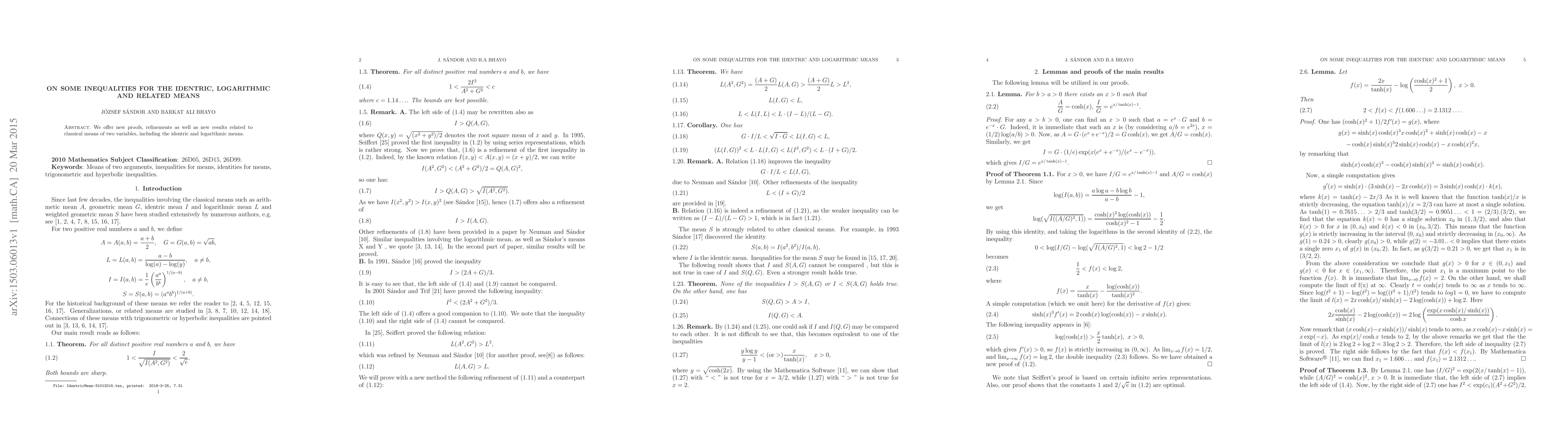 We offer new proofs, refinements as well as new results related to classical means of two variables, including the identric and logarithmic means.