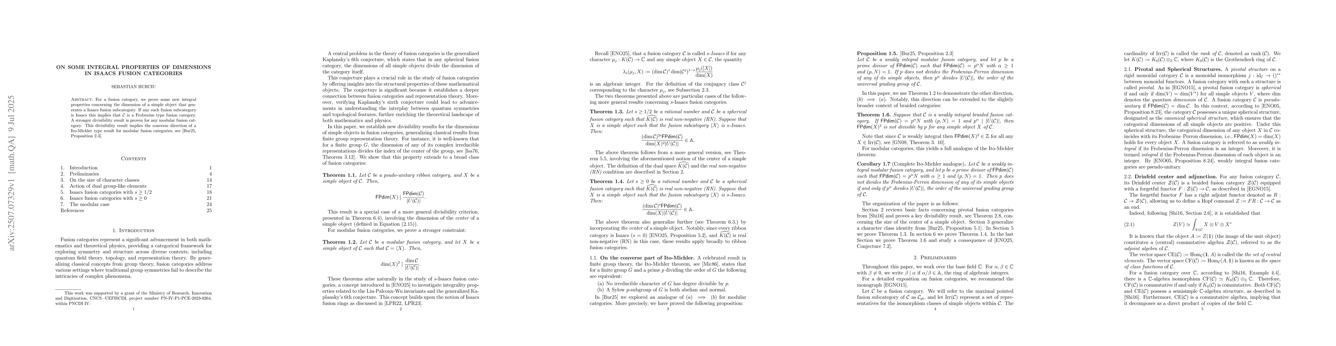For a fusion category, we prove some new integral properties concerning the dimension of a simple object that generates a Isaacs fusion subcategory. A stronger divisibility result is proven for any modular fusion category. This divisibility result implies the converse direction of a Ito-Michler type result for modular fusion categories, recently established by the author.