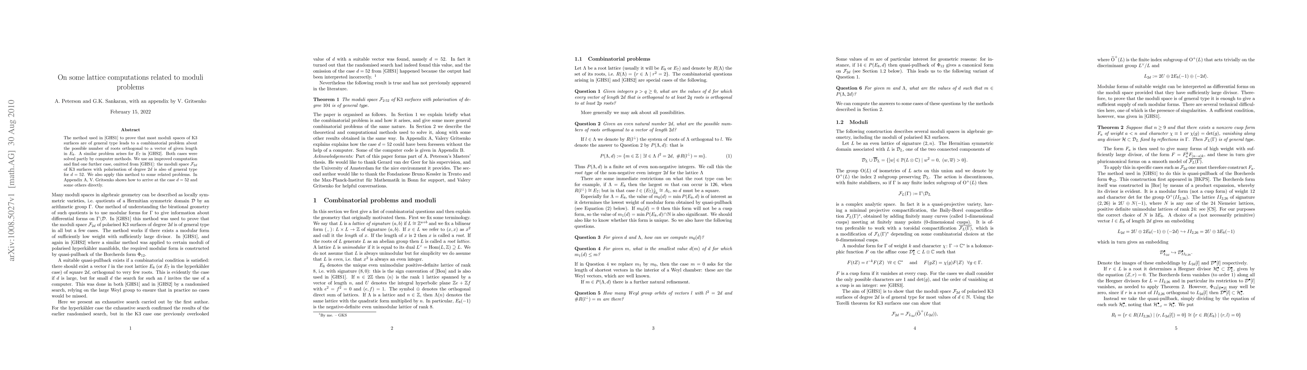 We show how to solve computationally a combinatorial problem about the possible number of roots orthogonal to a vector of given length in $E_8$. We show that the moduli space of K3 surfaces with polarisation of degree 2d is also of general type for d=52. This case was omitted from the earlier work of Gritsenko, Hulek and the second author. We also apply this method to some related problems. In Appendix A, V. Gritsenko shows how to arrive at the case d=52 and some others directly.