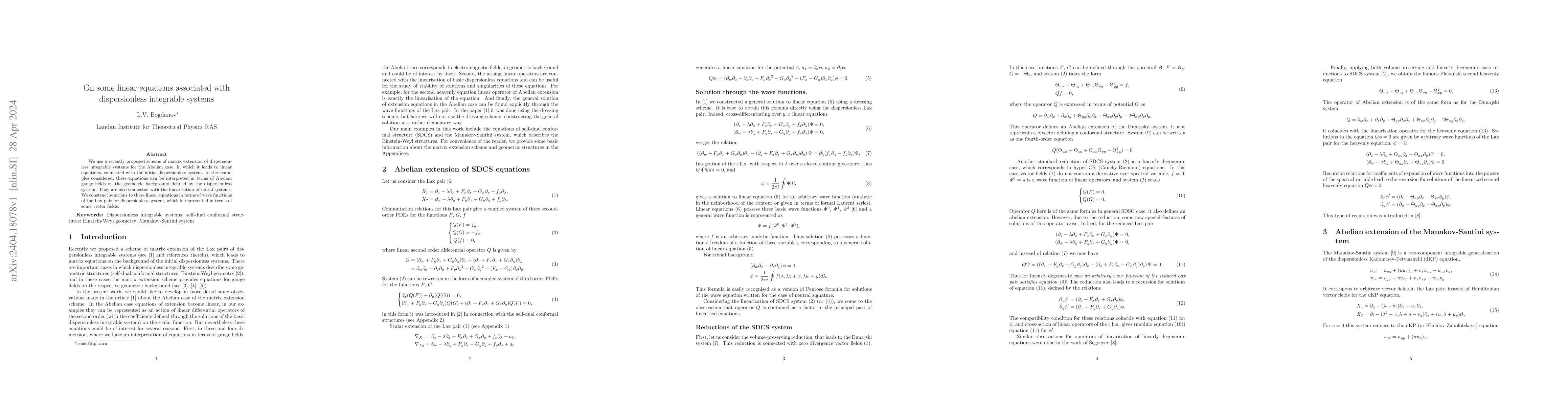 The paper proposes a matrix extension scheme for dispersionless integrable systems, leading to linear equations interpreted as Abelian gauge fields. Solutions to these equations are constructed using wave functions from the Lax pair of the original system.