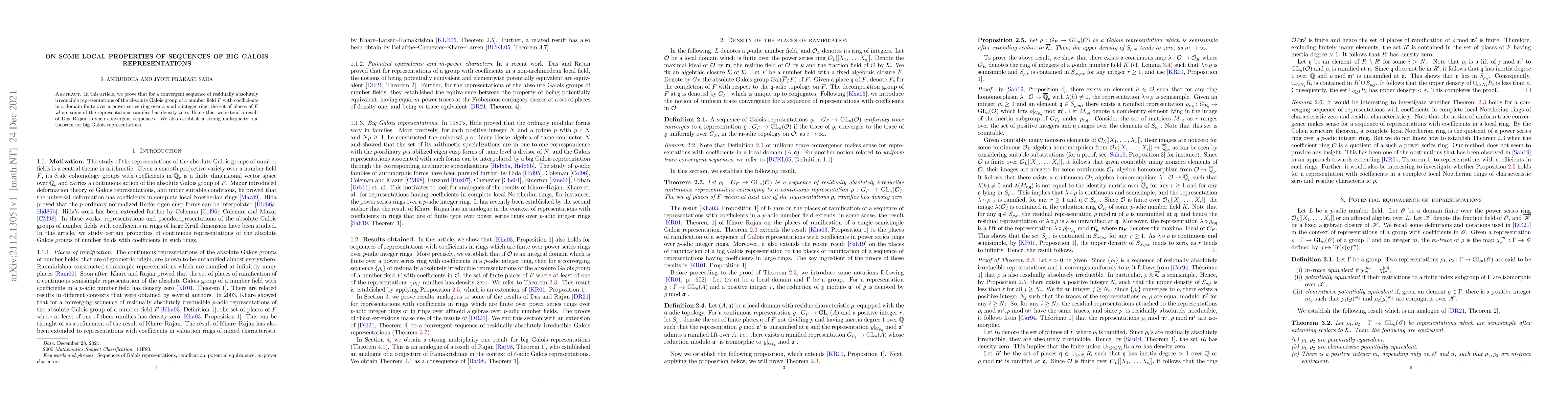 In this article, we prove that for a convergent sequence of residually absolutely irreducible representations of the absolute Galois group of a number field $F$ with coefficients in a domain finite over a power series ring over a $p$-adic integer ring, the set of places of $F$ where some of the representations ramifies has density zero. Using this, we extend a result of Das--Rajan to such convergent sequences. We also establish a strong multiplicity one theorem for big Galois representations.