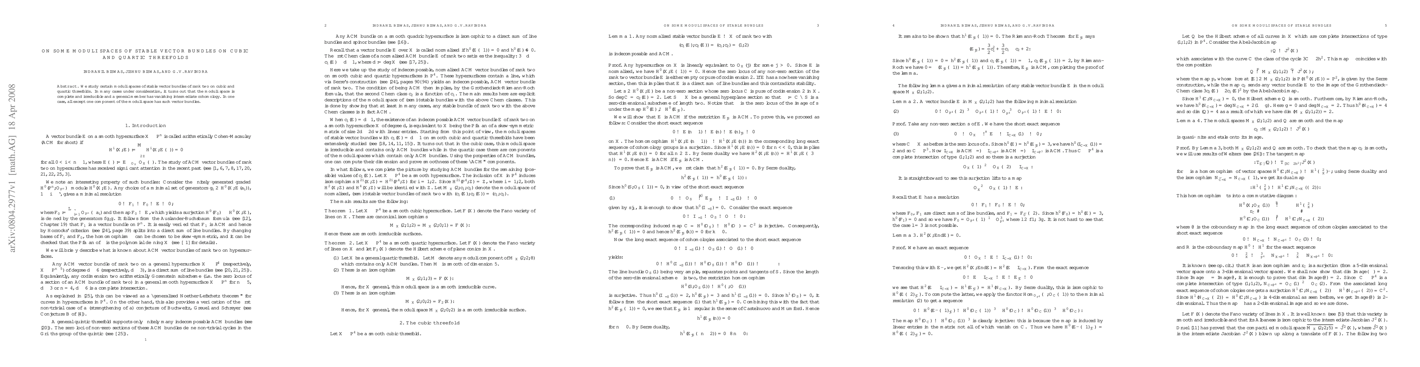 This paper investigates moduli spaces of rank two stable vector bundles on cubic and quartic threefolds, finding that these spaces are often complete, irreducible, and possess vector bundles with vanishing intermediate cohomology, except in one case where only one component lacks this property.