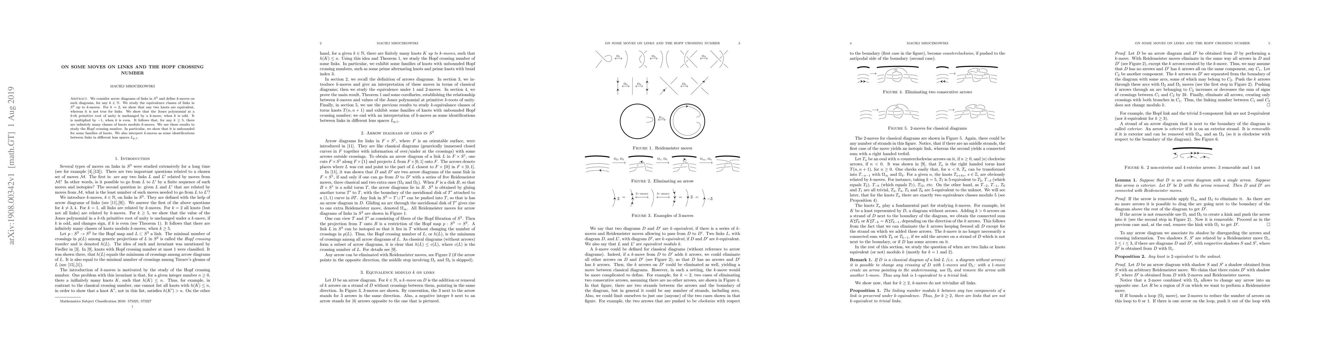 This research defines $k$-moves on link diagrams and shows that for $k=2$, all knots are equivalent under these moves, while links remain distinct. It finds that the Jones polynomial is invariant or changes sign under $k$-moves depending on $k$'s parity, leading to infinitely many knot classes modulo $k$-moves for $k\ge 5$. The study also reveals that the Hopf crossing number is unbounded for certain knot families and connects $k$-moves to identifications between links in different lens spaces.