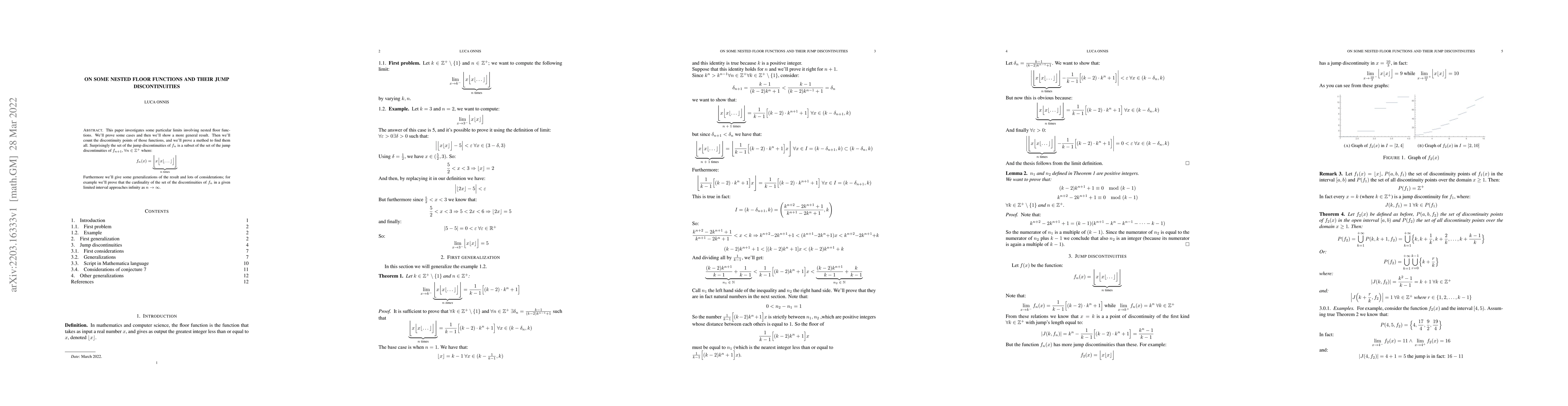 This paper explores limits involving nested floor functions and proves their jump discontinuities, showing that the discontinuities of $f_n$ are a subset of those of $f_{n+1}$ for all $n$. It also demonstrates that the cardinality of discontinuity sets grows infinitely as $n$ increases.