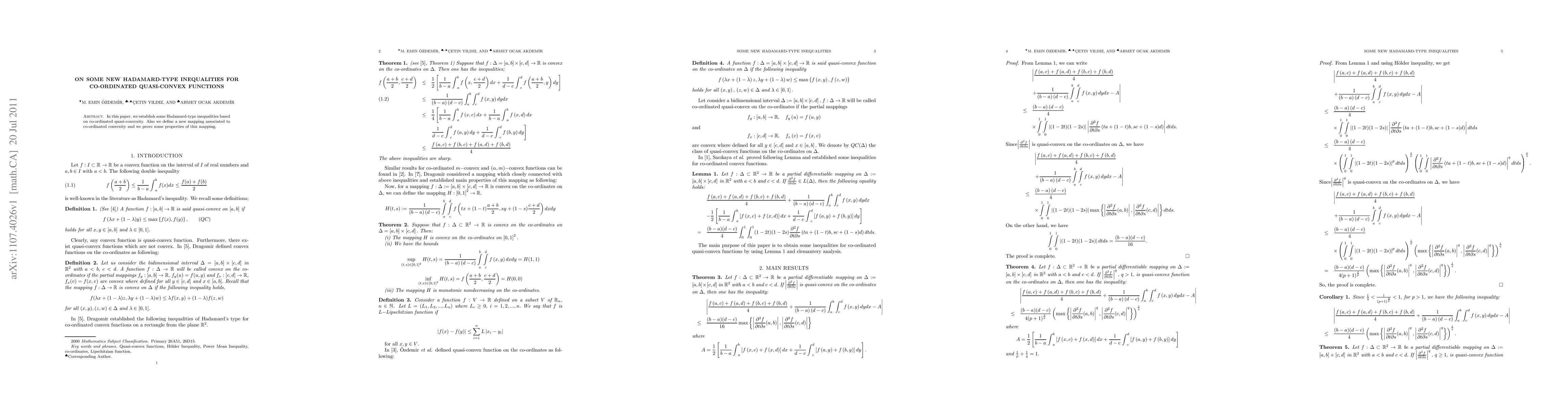 This paper establishes new Hadamard-type inequalities for coordinated quasi-convex functions, and introduces a novel mapping related to coordinated convexity, along with proofs of its properties.
