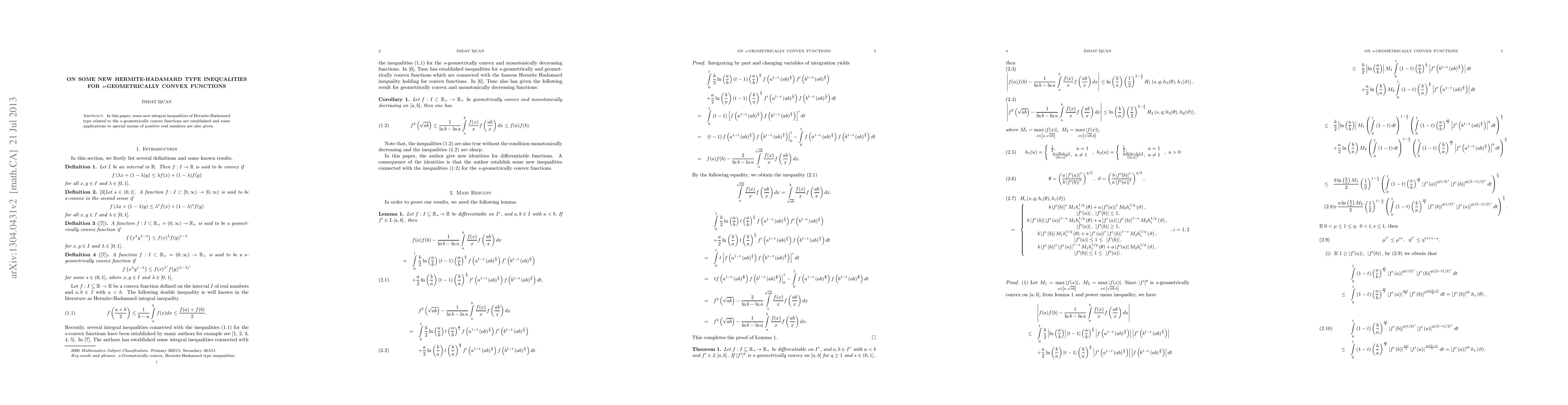 This paper establishes new Hermite-Hadamard type integral inequalities for s-geometrically convex functions and provides applications to special means of positive real numbers. The results extend existing inequalities and offer novel insights into convex analysis.