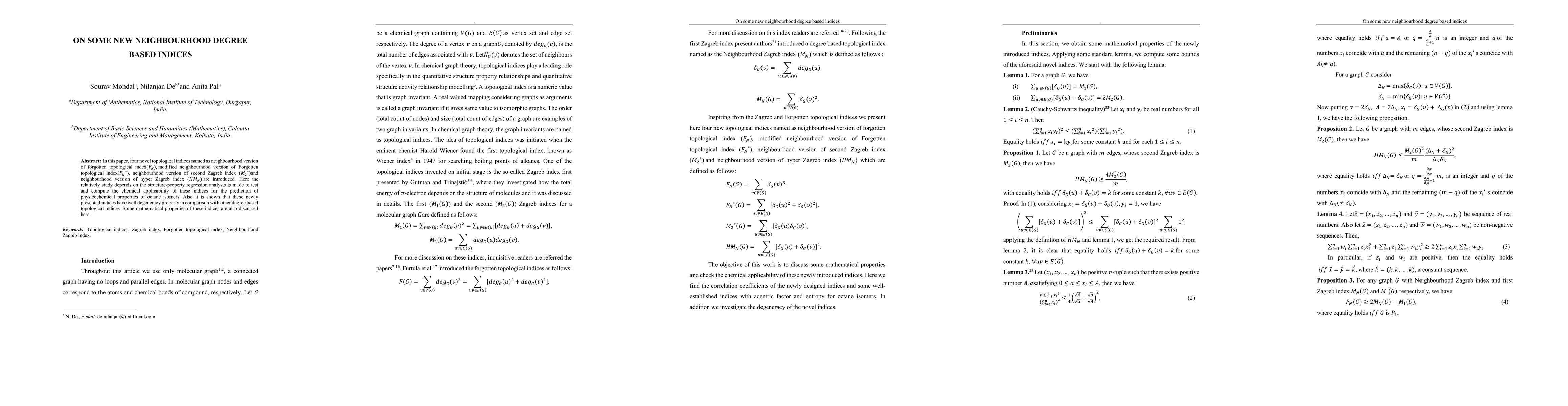 This paper introduces four new neighbourhood degree-based topological indices and examines their chemical applicability for predicting the physicochemical properties of octane isomers through structure-property regression analysis. The study also demonstrates the indices' degeneracy properties compared to other degree-based indices and discusses their mathematical properties.