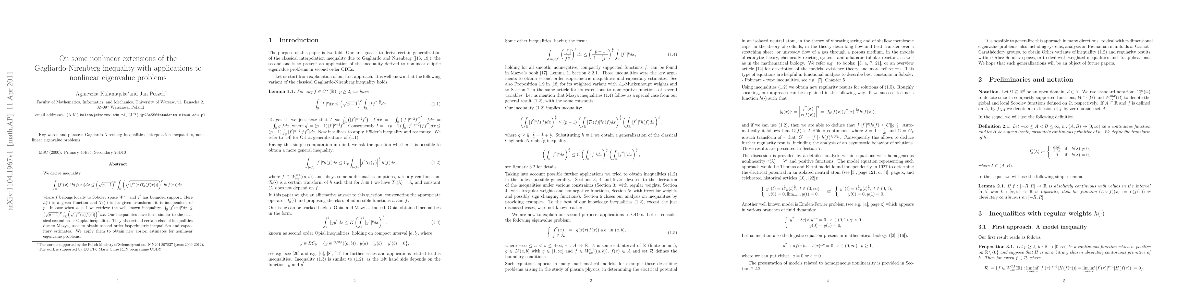 This paper derives new inequalities extending the Gagliardo-Nirenberg inequality for functions in Sobolev space W^{2,1}, with applications in solving nonlinear eigenvalue problems. These inequalities also encompass previous work by Mazya, offering potential for new apriori estimates.