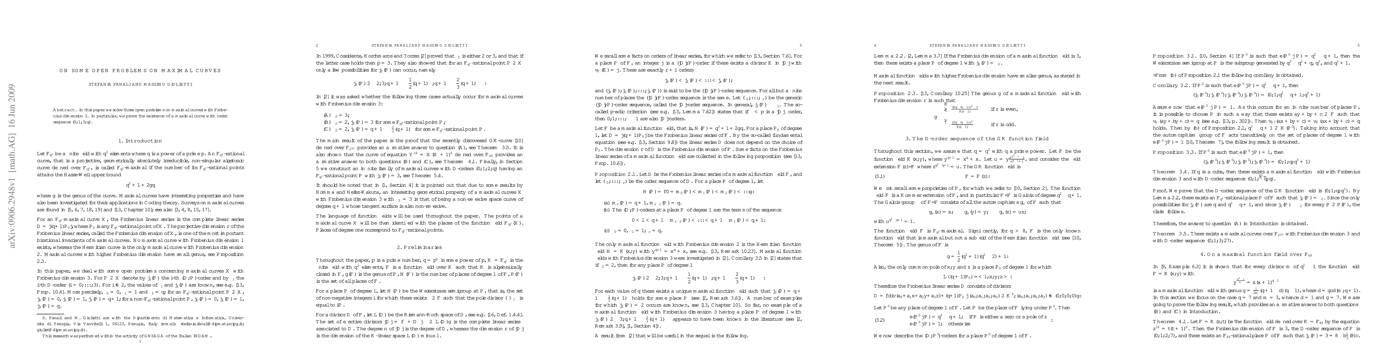 This paper solves three open problems on maximal curves with Frobenius dimension 3, proving the existence of a specific type of curve with order sequence (0,1,3,q). The result has implications for understanding maximal curves in finite fields.