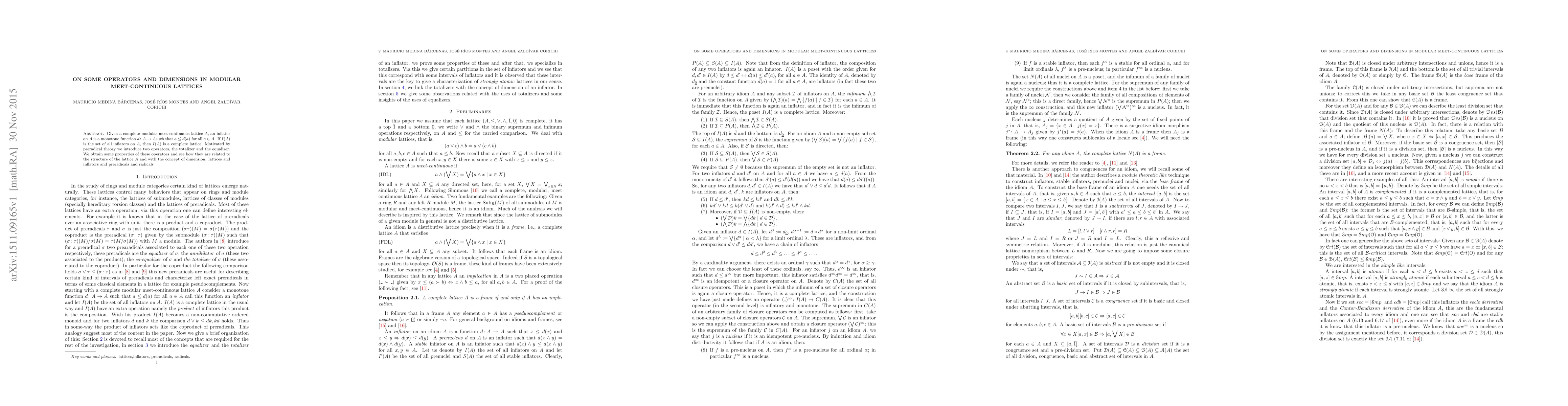 Given a complete modular meet-continuous lattice $A$, an inflator on $A$ is a monotone function $d\colon A\rightarrow A$such that $a\leq d(a)$ for all $a\in A$. If $I(A)$ is the set of all inflators on $A$, then $I(A)$ is a complete lattice. Motivated by preradical theory we introduce two operators, the totalizer and the equalizer. We obtain some properties of these operators and see how they are related to the structure of the lattice $A$ and with the concept of dimension.