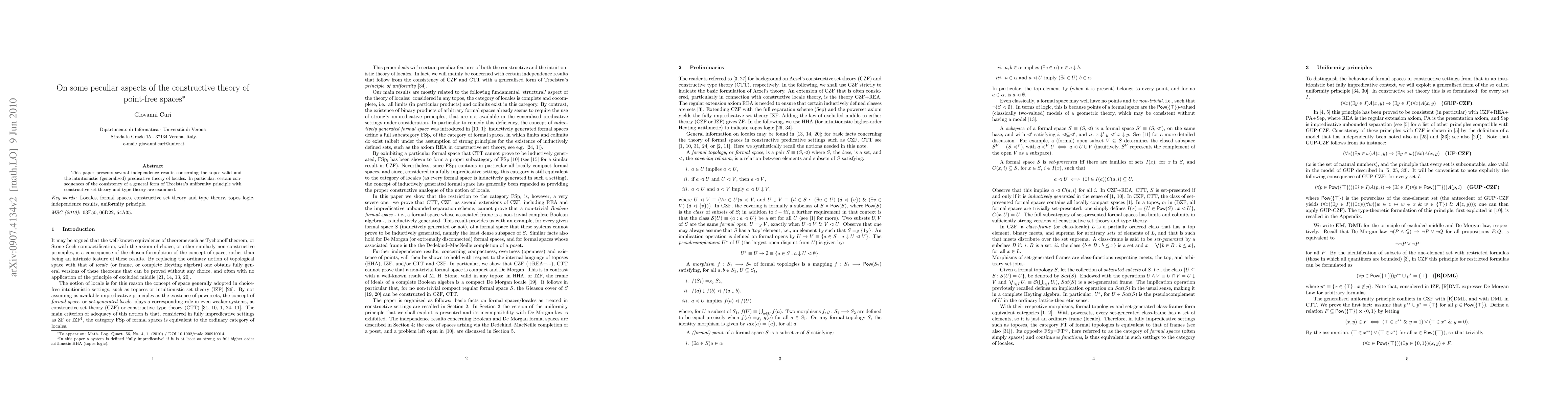 This paper explores independence results in constructive theories of locales, focusing on the consistency of Troelstra's uniformity principle with constructive set theory and type theory, revealing significant implications for topos-valid and intuitionistic predicative theories.