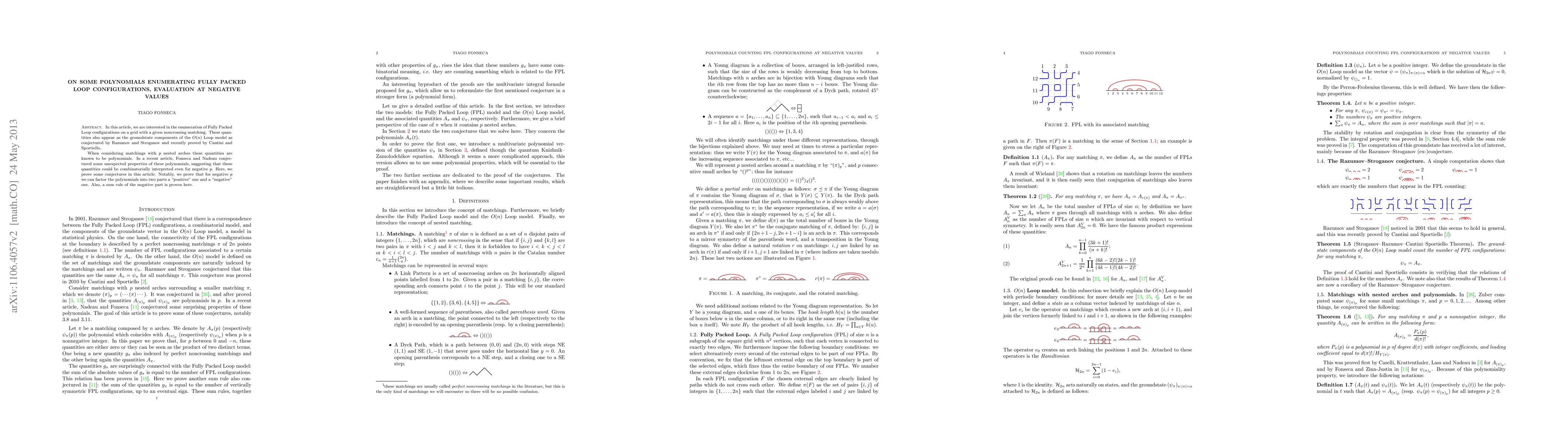 This paper proves conjectures regarding the enumeration of Fully Packed Loops configurations, showing that the associated polynomials can be factored into positive and negative parts when evaluated at negative values of p. Additionally, it establishes sum rules for the negative part of these polynomials.