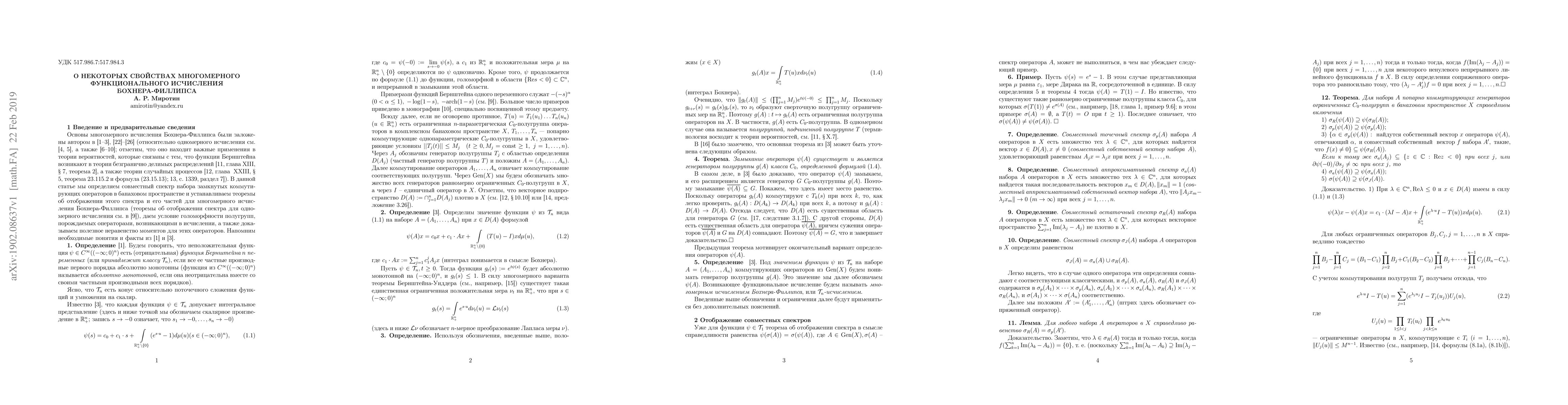 The multidimensional functional calculus of semigroup generators, based on the class of Bernstein functions in several variables is developed, the spectral mapping theorems for joint spectra have been stated, the condition for holomorphy of semigroups, generated by operators which arises in the calculus is given, and the moment inequality for such operators is proved.