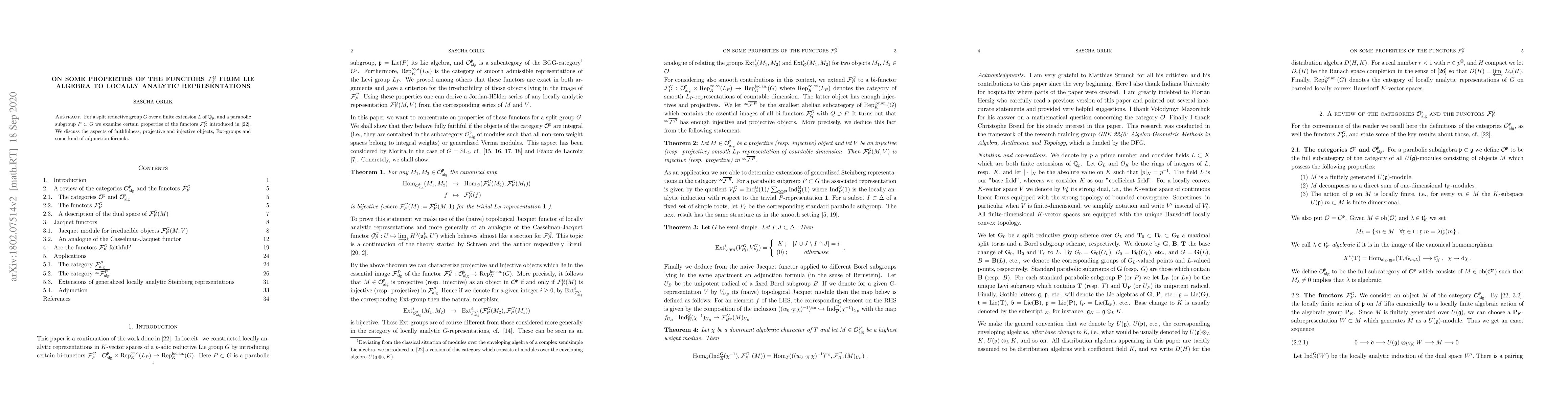 For a split reductive group $G$ over a finite extension $L$ of ${\mathbb Q}_p$, and a parabolic subgroup $P \subset G$ we examine functorial properties of the functors ${\mathcal F}^G_P$ introduced in \cite{OS2}. We discuss the aspects of faithfulness, projective and injective objects, Ext-groups and some kind of adjunction formulas.