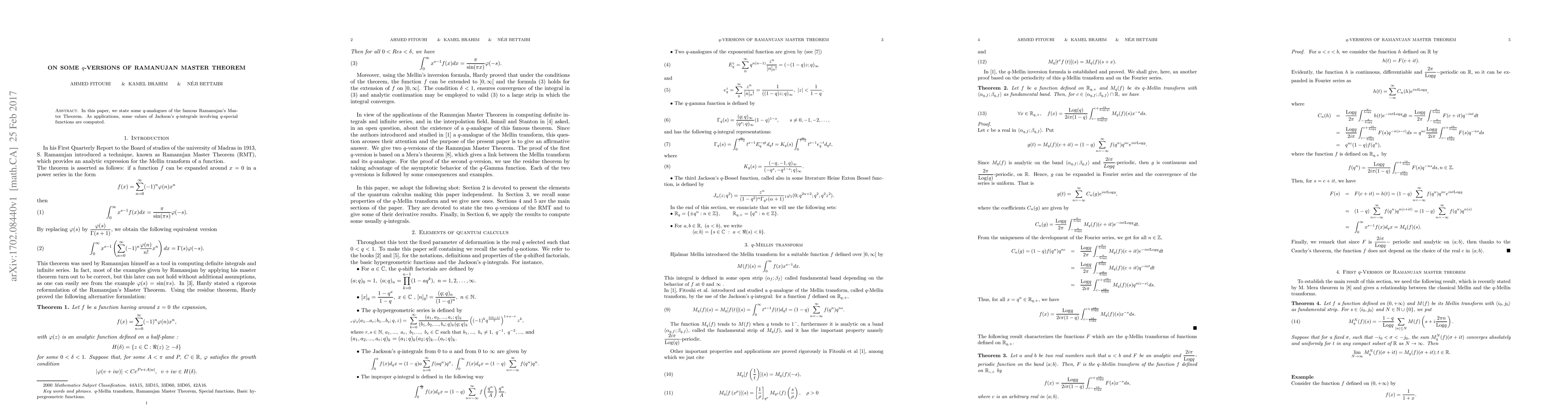In this paper, we state some $q$-analogues of the famous Ramanujan's Master Theorem. As applications, some values of Jackson's $q$-integrals involving $q$-special functions are computed.