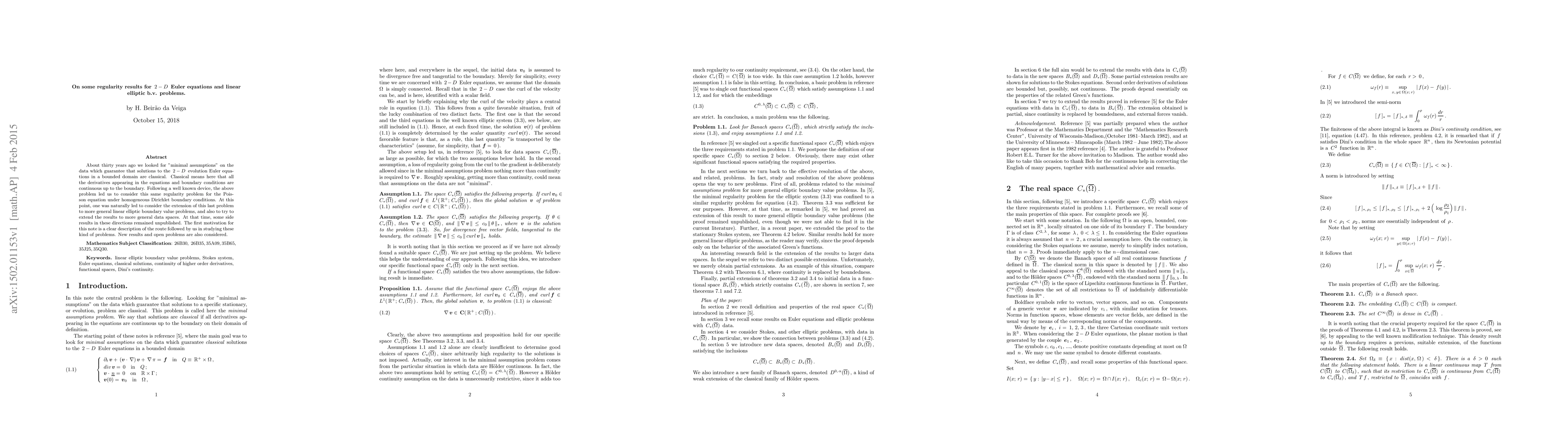 About thirty years ago we looked for "minimal assumptions" on the data which guarantee that solutions to the $\,2-D\,$ evolution Euler equations in a bounded domain are classical. Classical means here that all the derivatives appearing in the equations and boundary conditions are continuous up to the boundary. Following a well known device, the above problem led us to consider this same regularity problem for the Poisson equation under homogeneous Dirichlet boundary conditions. At this point, one was naturally led to consider the extension of this last problem to more general linear elliptic boundary value problems, and also to try to extend the results to more general data spaces. At that time, some side results in these directions remained unpublished. The first motivation for this note is a clear description of the route followed by us in studying these kind of problems. New results and open problems are also considered.