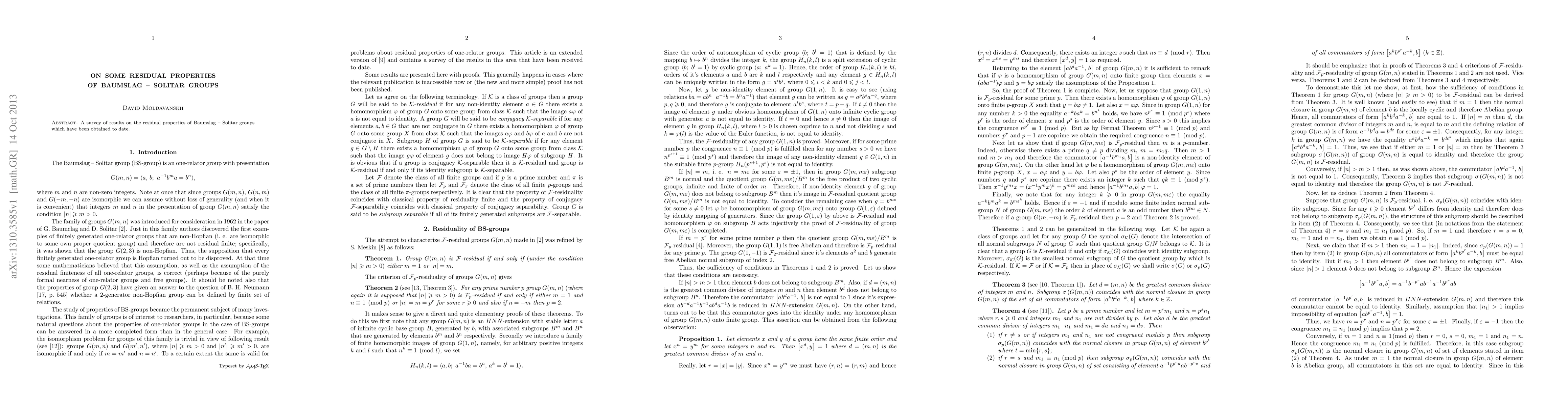 Summary: This paper surveys the current findings on the residual properties of Baumslag-Solitar groups, highlighting the various aspects and results obtained to date in this area of group theory.