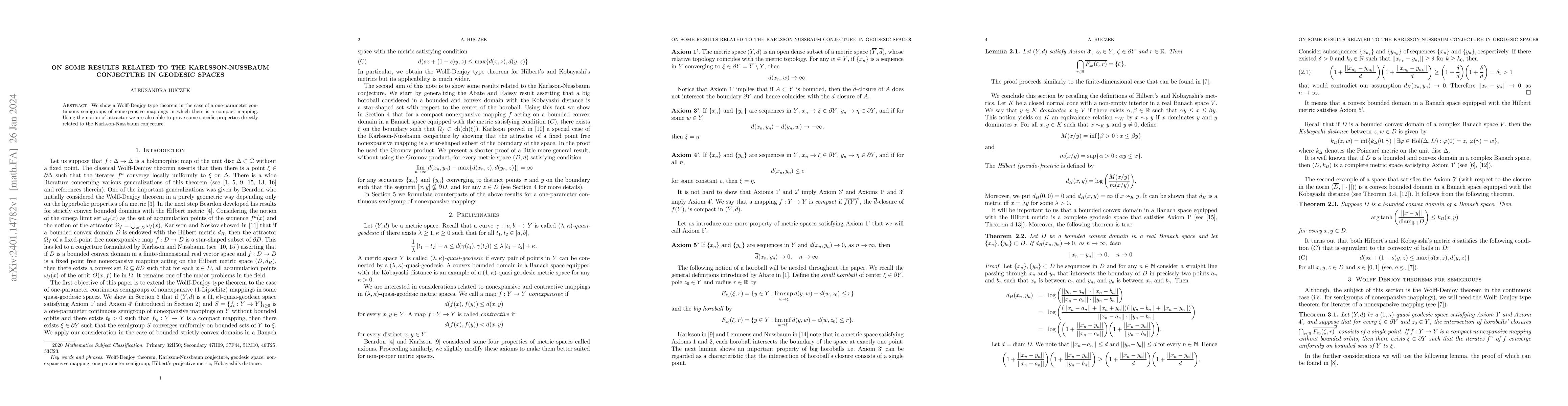 Summary: This paper establishes a Wolff-Denjoy theorem for a one-parameter continuous semigroup of nonexpansive mappings in geodesic spaces, proving specific properties linked to the Karlsson-Nussbaum conjecture through the concept of attractor.