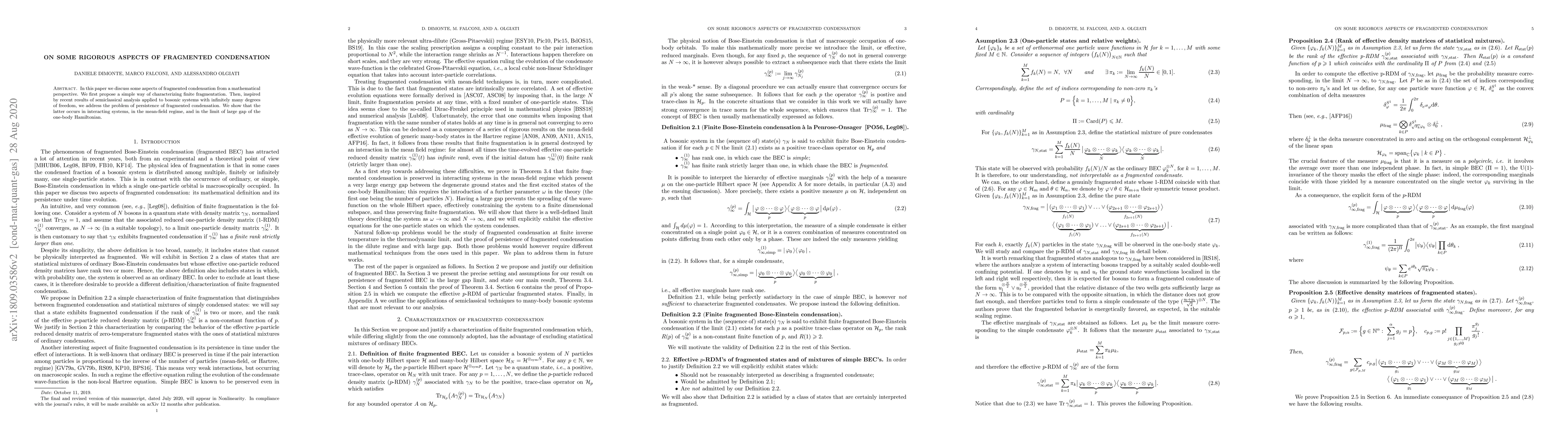 This paper explores fragmented condensation in mathematical physics, showing that it persists in interacting systems under certain conditions. It provides a new characterization of finite fragmentation and sheds light on its behavior in the mean-field regime and large gap limits.