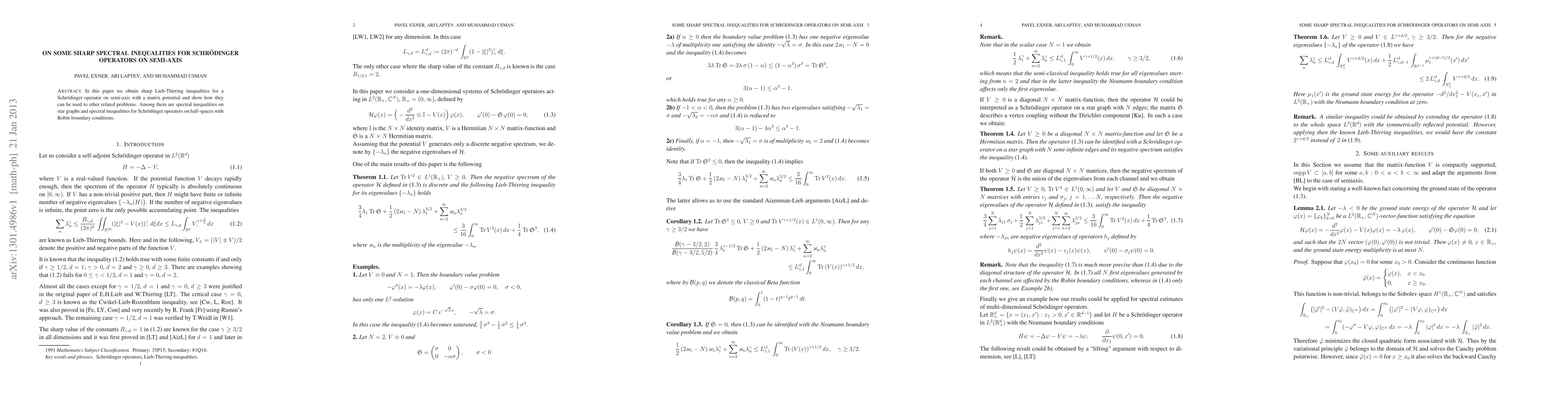 This paper establishes sharp Lieb-Thirring inequalities for Schrödinger operators on a semi-axis with matrix potentials, demonstrating their utility in deriving spectral inequalities for star graphs and half-spaces with Robin boundary conditions.