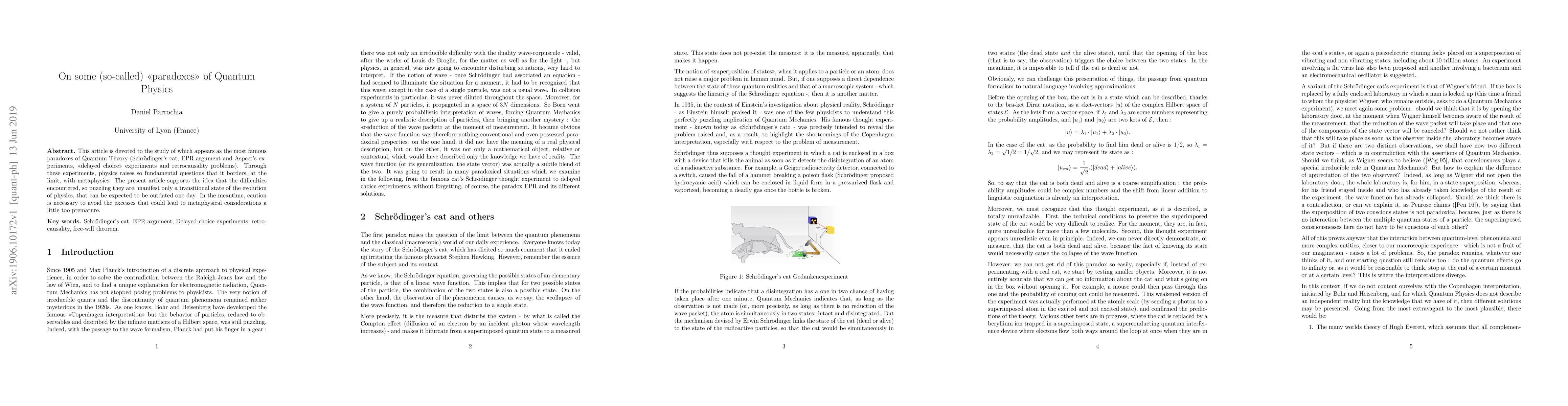 This article is devoted to the study of which appears as the most famous paradoxes of quantum theory (Schrodinger cat, EPR argument and Aspect experiments, delayed choice experiments and retrocausality problems). Through these experiments, physics raises so fundamental questions that it borders, at the limit, with metaphysics. The present article supports the idea that the difficulties encountered, so puzzling they are, manifest only a transitional state of the evolution of physics, that can be expected to be outdated one day. In the meantime, caution is necessary to avoid the excesses that could lead to metaphysical considerations a little too premature.