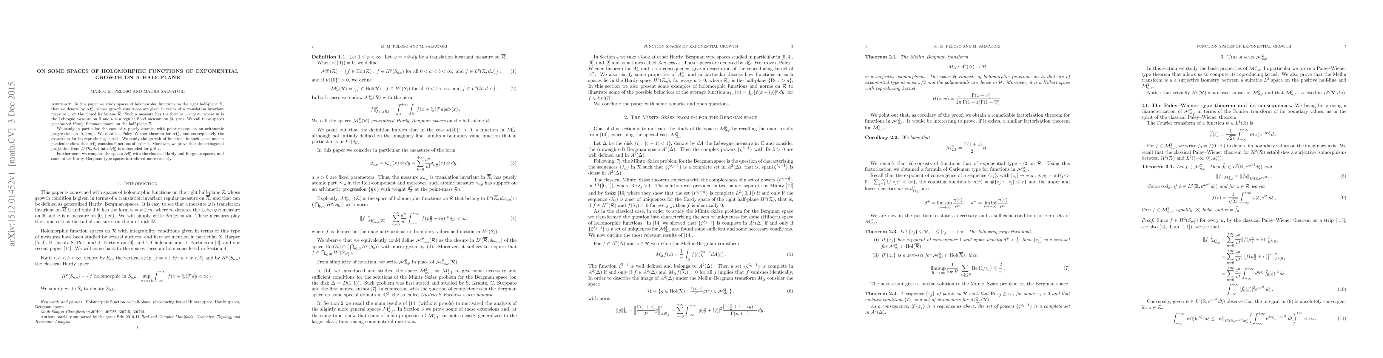 This paper investigates generalized Hardy-Bergman spaces of holomorphic functions on the right half-plane, characterized by a translation invariant measure $\omega$. It establishes a Paley-Wiener theorem and shows that these spaces contain functions of order 1, while the orthogonal projection from $L^p$ spaces into them is unbounded for $p\neq2$.