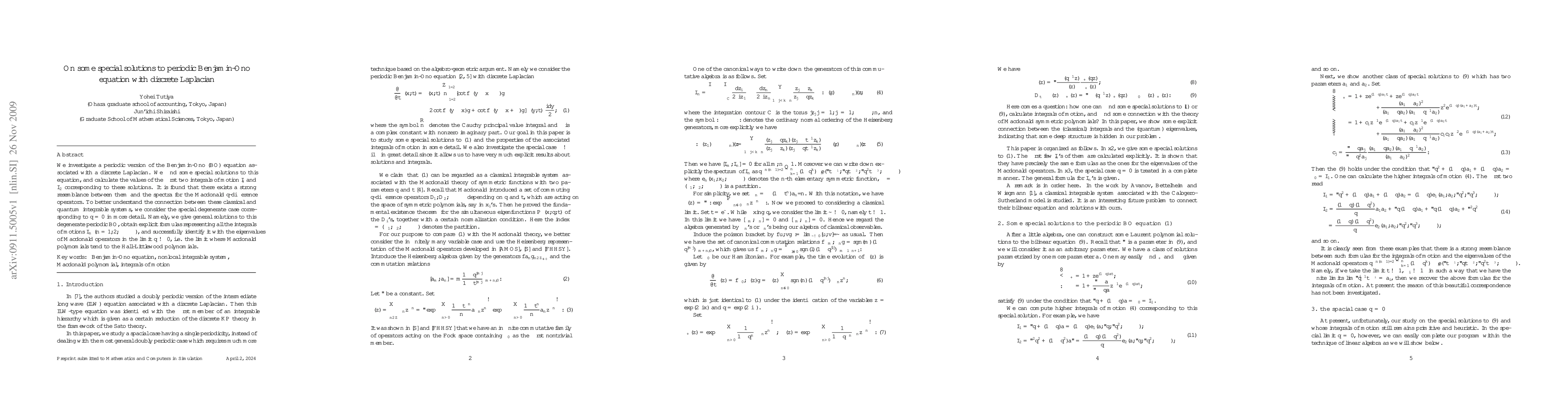 We investigate a periodic version of the Benjamin-Ono (BO) equation associated with a discrete Laplacian. We find some special solutions to this equation, and calculate the values of the first two integrals of motion $I_1$ and $I_2$ corresponding to these solutions. It is found that there exists a strong resemblance between them and the spectra for the Macdonald $q$-difference operators. To better understand the connection between these classical and quantum integrable systems, we consider the special degenerate case corresponding to $q=0$ in more detail. Namely, we give general solutions to this degenerate periodic BO, obtain explicit formulas representing all the integrals of motions $I_n$ ($n=1,2,...$), and successfully identify it with the eigenvalues of Macdonald operators in the limit $q\to 0$, i.e. the limit where Macdonald polynomials tend to the Hall-Littlewood polynomials.