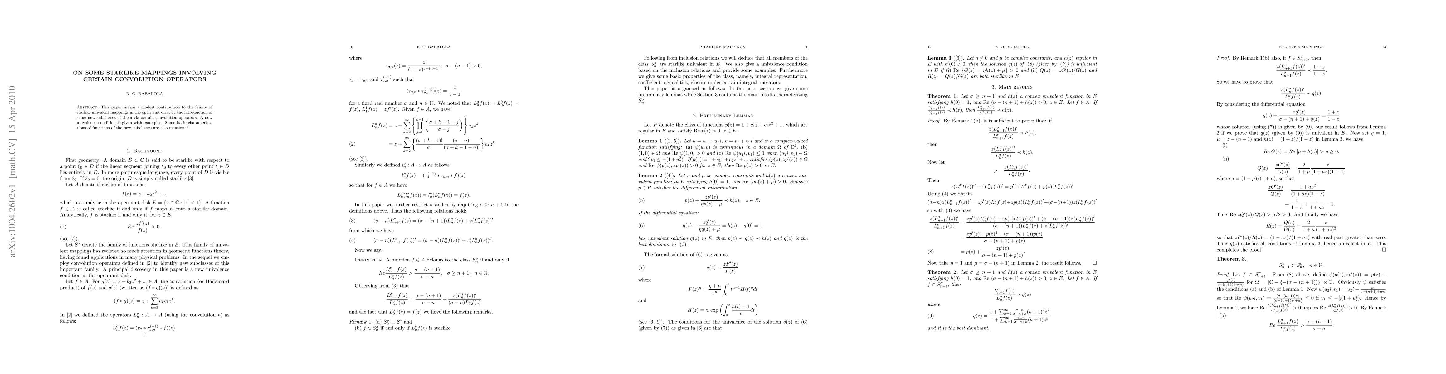 This paper introduces new subclasses of starlike univalent mappings in the open unit disk through convolution operators, providing a new univalence condition and basic characterizations of these functions. Examples are included to illustrate the new findings.