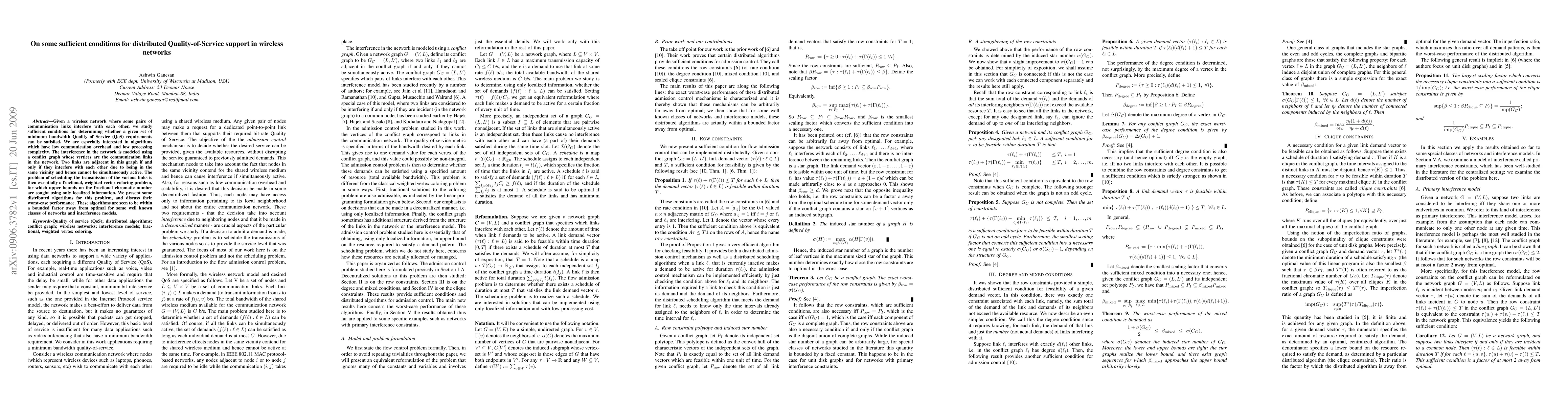 This paper explores conditions for ensuring Quality of Service in wireless networks with interfering links, proposing distributed algorithms for scheduling transmission that achieve near-optimal performance.