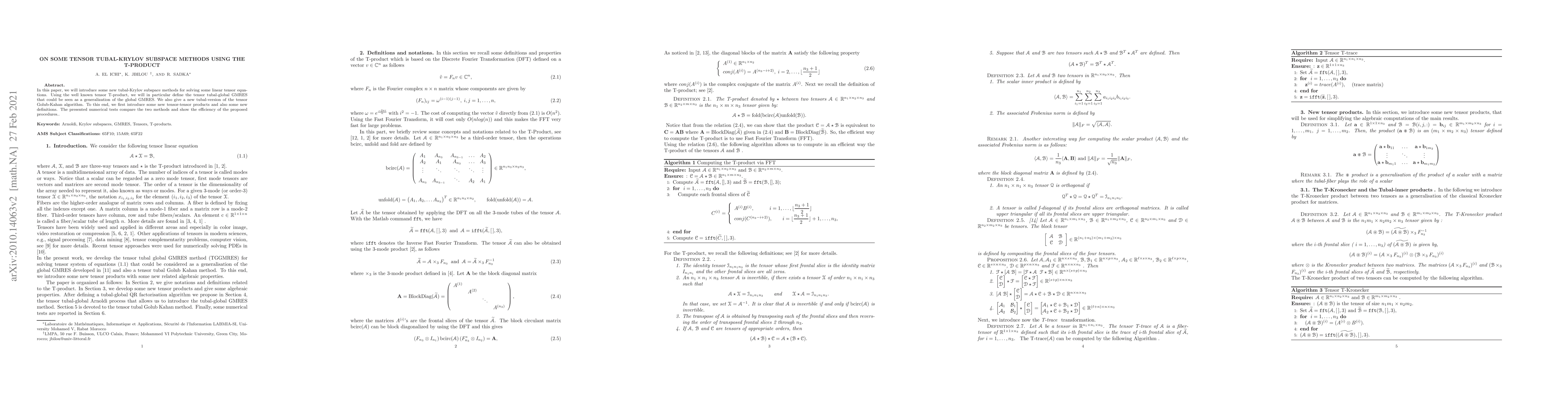 This paper introduces novel tensor Krylov subspace methods for solving linear tensor equations using the T-product, including new tensor products and algebraic properties. The developed methods include third-order tensor tubal GMRES and tensor tubal Golub-Kahan methods, with numerical experiments demonstrating their efficacy.