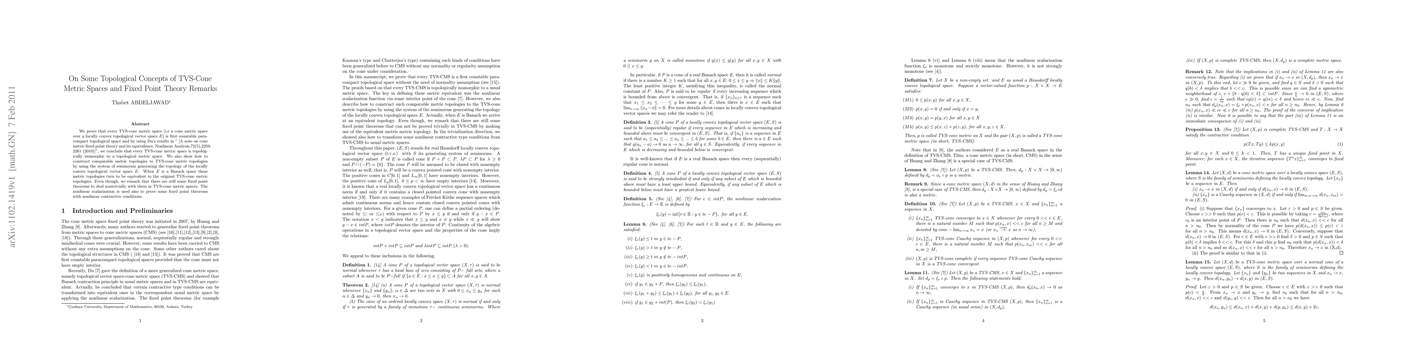 This paper demonstrates that TVS-cone metric spaces are first countable paracompact spaces and topologically isomorphic to metric spaces. It constructs comparable metric topologies using seminorms from the underlying vector space, which are equivalent when the space is Banach. It also highlights the existence of nontrivial fixed point theorems in these spaces.