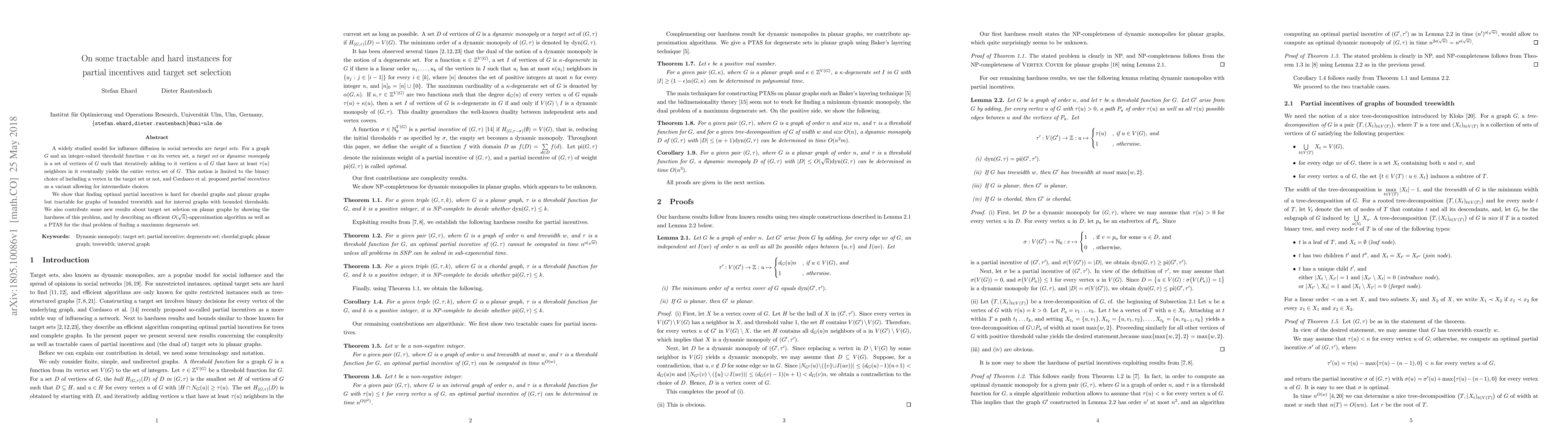 Research finds that partial incentives for target set selection can be tractable on certain graph types (bounded treewidth, interval graphs) but hard on others (chordal graphs, planar graphs), with new approximation algorithms and results.