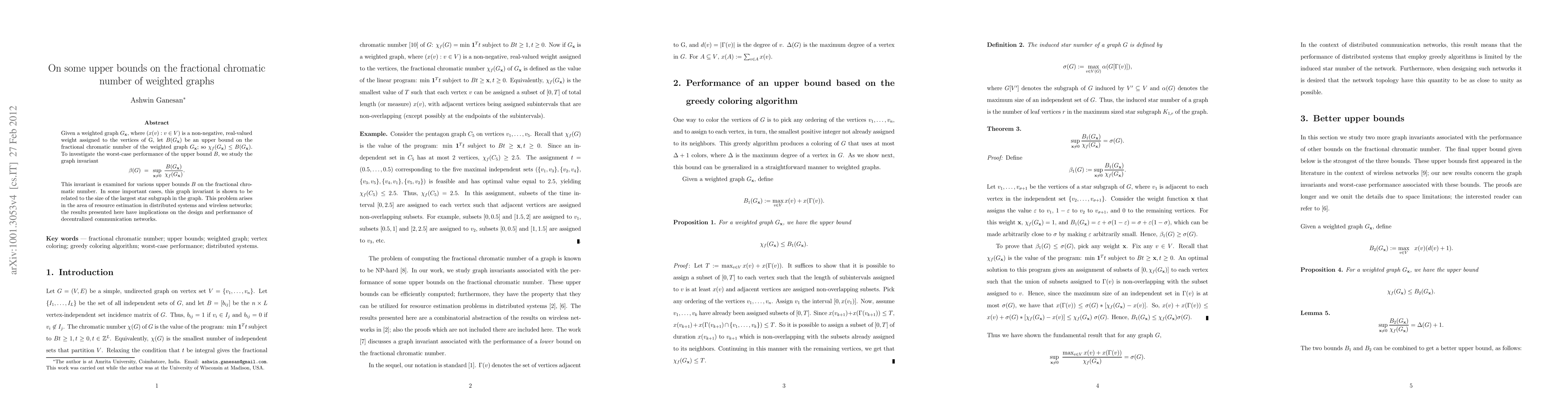 This paper investigates an upper bound for fractional chromatic number in weighted graphs and its relation to the size of largest star subgraph, with implications for decentralized communication networks.