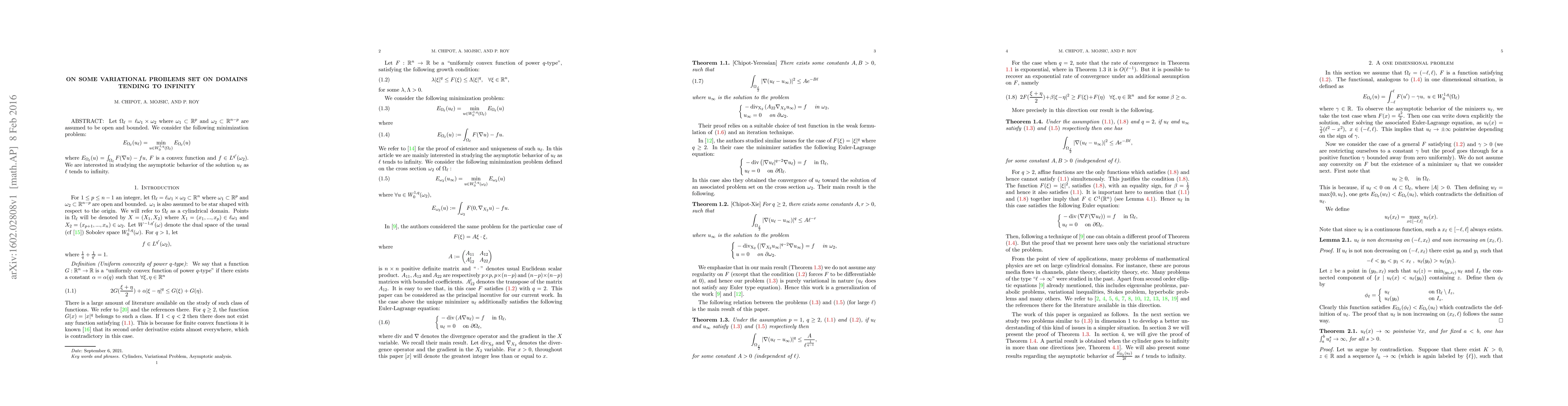 Let $\Omega_\ell = \ell\omega_1 \times \omega_2$ where $\omega_1 \subset \R^p$ and $\omega_2 \subset \R^{n-p}$ are assumed to be open and bounded. We consider the following minimization problem: $$E_{\Omega_\ell}(u_\ell) = \min_{u\in W_0^{1,q}(\Omega_\ell)}E_{\Omega_\ell}(u)$$ where $E_{\Omega_\ell}(u) = \int_{\Omega_\ell}F(\grad u)-fu$, $F$ is a convex function and $f\in L^{q'}(\omega_2)$. We are interested in studying the asymptotic behavior of the solution $u_\ell$ as $\ell$ tends to infinity.
