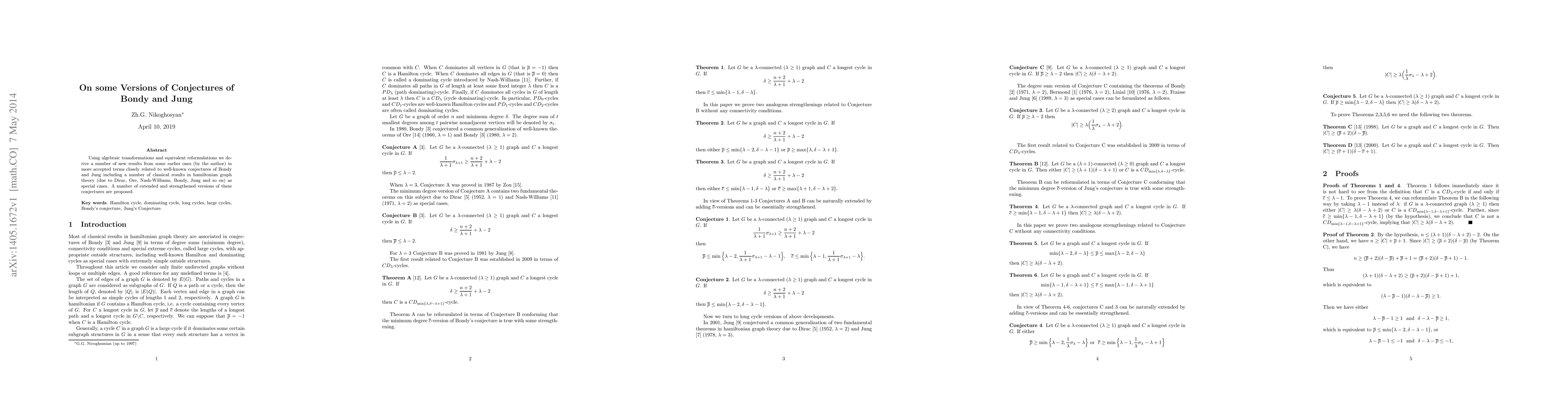 Researchers derive new results from earlier work in graph theory, strengthening classic conjectures of Bondy and Jung and proposing extended versions, using algebraic transformations and equivalent reformulations.