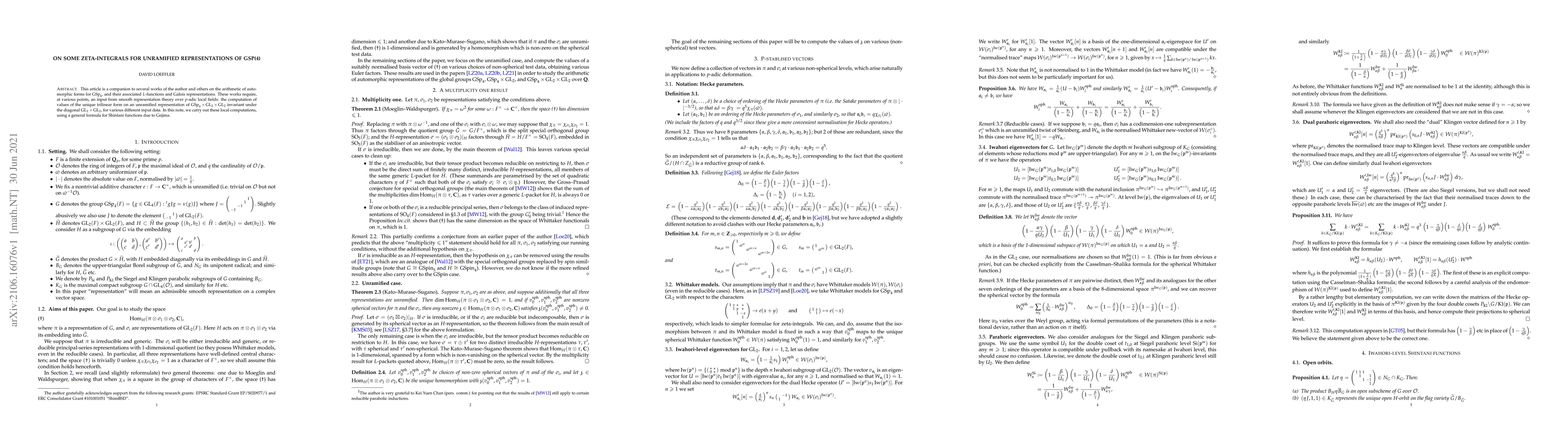 This paper computes values of trilinear forms on unramified representations of GSp(4) × GL(2) × GL(2) using Shintani functions, contributing to the arithmetic study of automorphic forms and their associated L-functions and Galois representations. The results are derived via a general formula provided by Gejima.