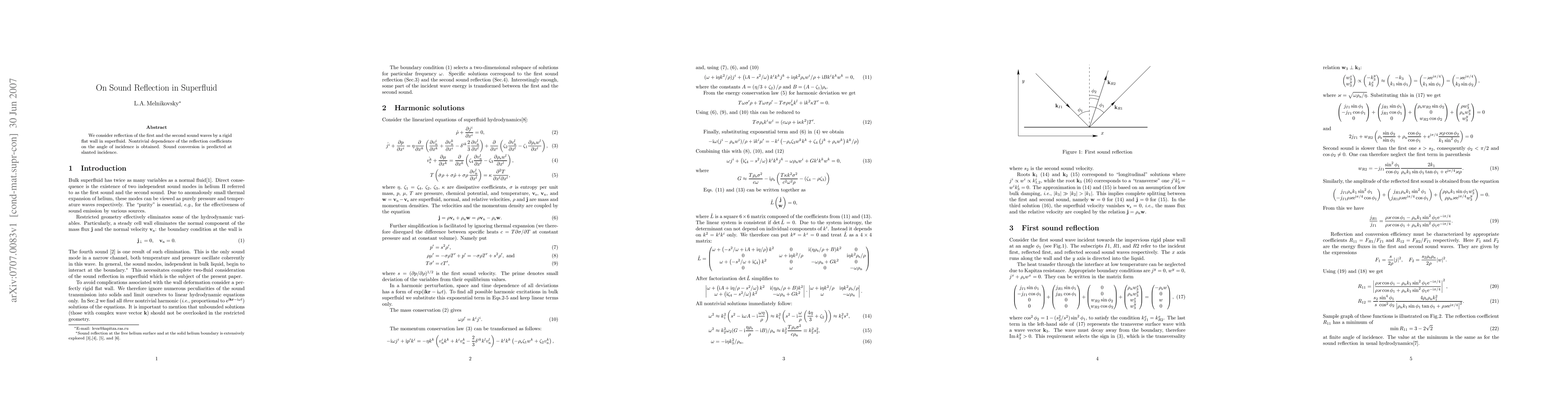 We consider reflection of the first and the second sound waves by a rigid flat wall in superfluid. Nontrivial dependence of the reflection coefficients on the angle of incidence is obtained. Sound conversion is predicted at slanted incidence.
