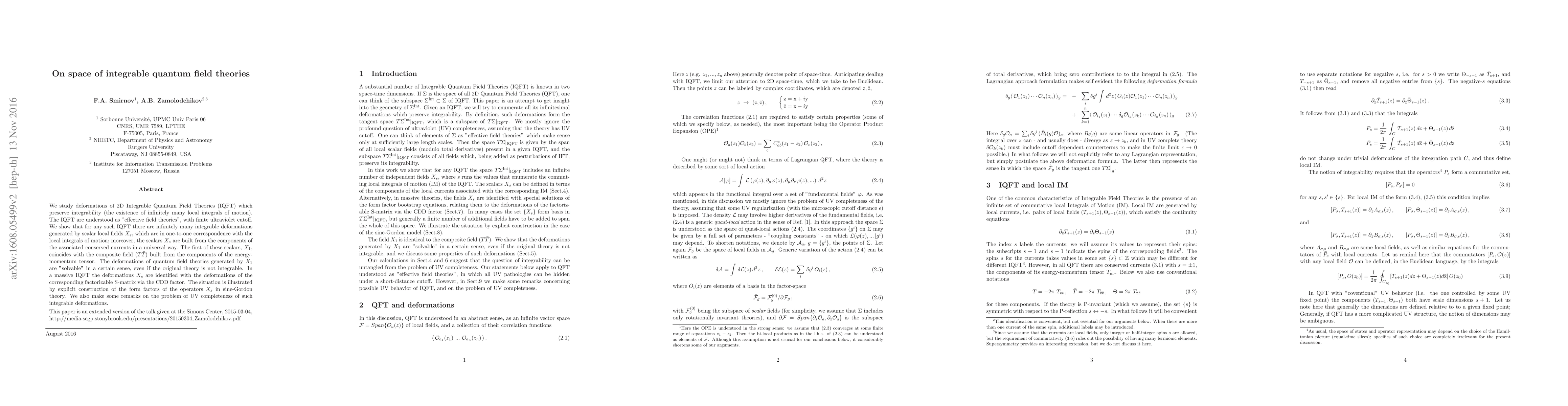 This paper explores integrable deformations of 2D Quantum Field Theories (IQFT) that maintain integrability, revealing an infinite set of such deformations generated by scalar fields. These scalars, linked to conserved currents, offer "solvable" deformations even for non-integrable original theories.