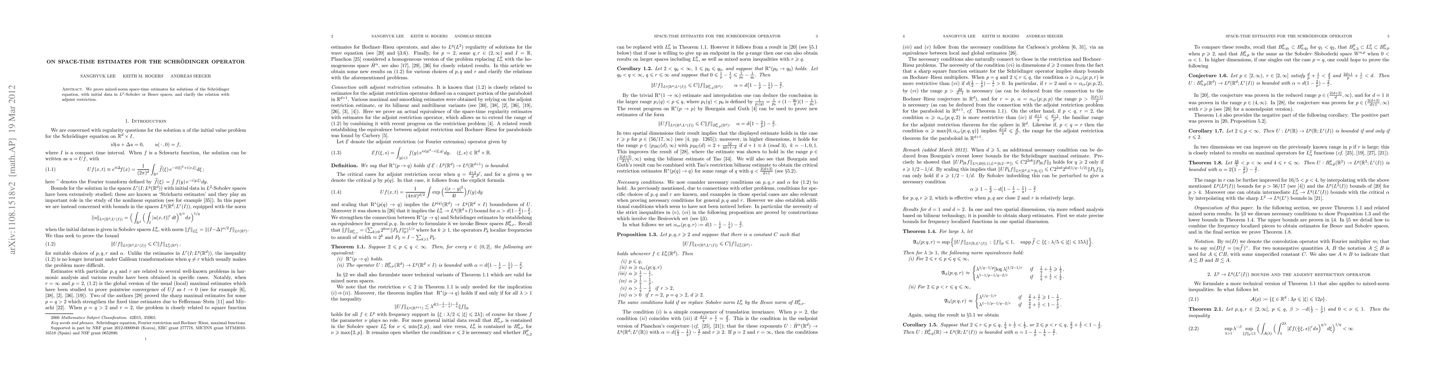 Summary: The paper establishes mixed norm space-time estimates for solutions of the Schrödinger equation with initial data in $L^p$ Sobolev or Besov spaces, and elucidates the relationship with adjoint restriction phenomena.