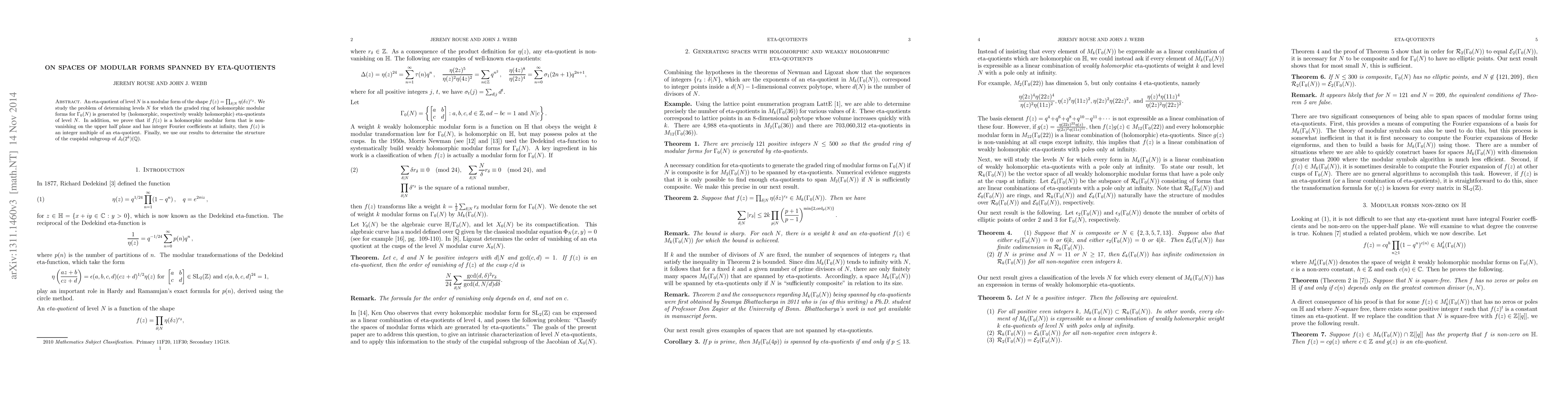 This paper investigates when the graded ring of holomorphic modular forms for $\Gamma_{0}(N)$ is generated by eta-quotients, and proves that non-vanishing holomorphic modular forms with integer Fourier coefficients are integer multiples of eta-quotients. It concludes by determining the cuspidal subgroup structure of $J_{0}(2^{k})(\mathbb{Q})$.