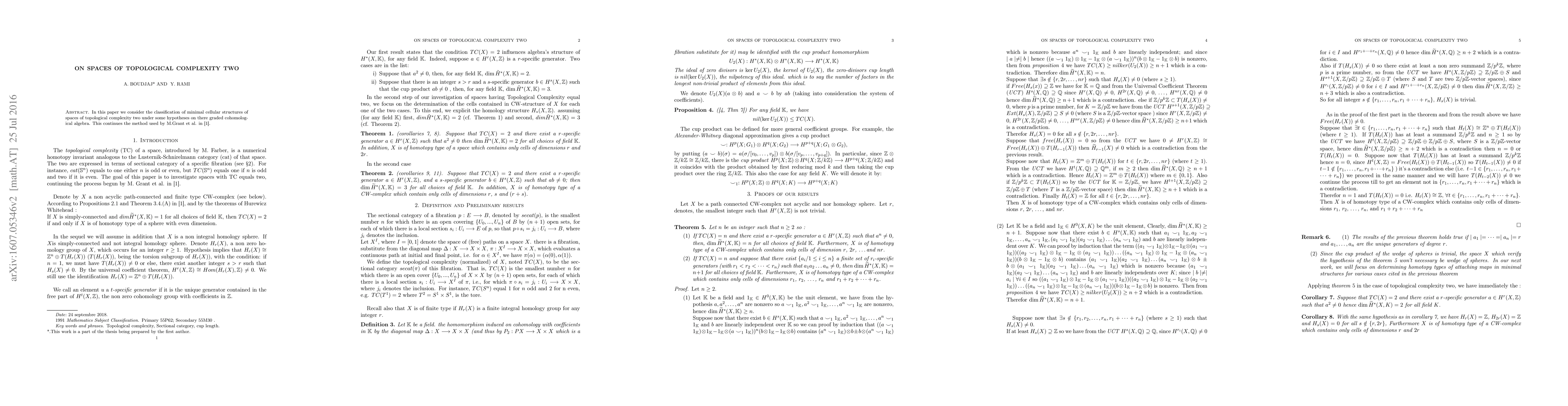 This paper investigates the classification of minimal cellular structures in spaces with topological complexity two, building on previous research. It aims to understand the properties of these structures under certain hypotheses about graded cohomological algebra.