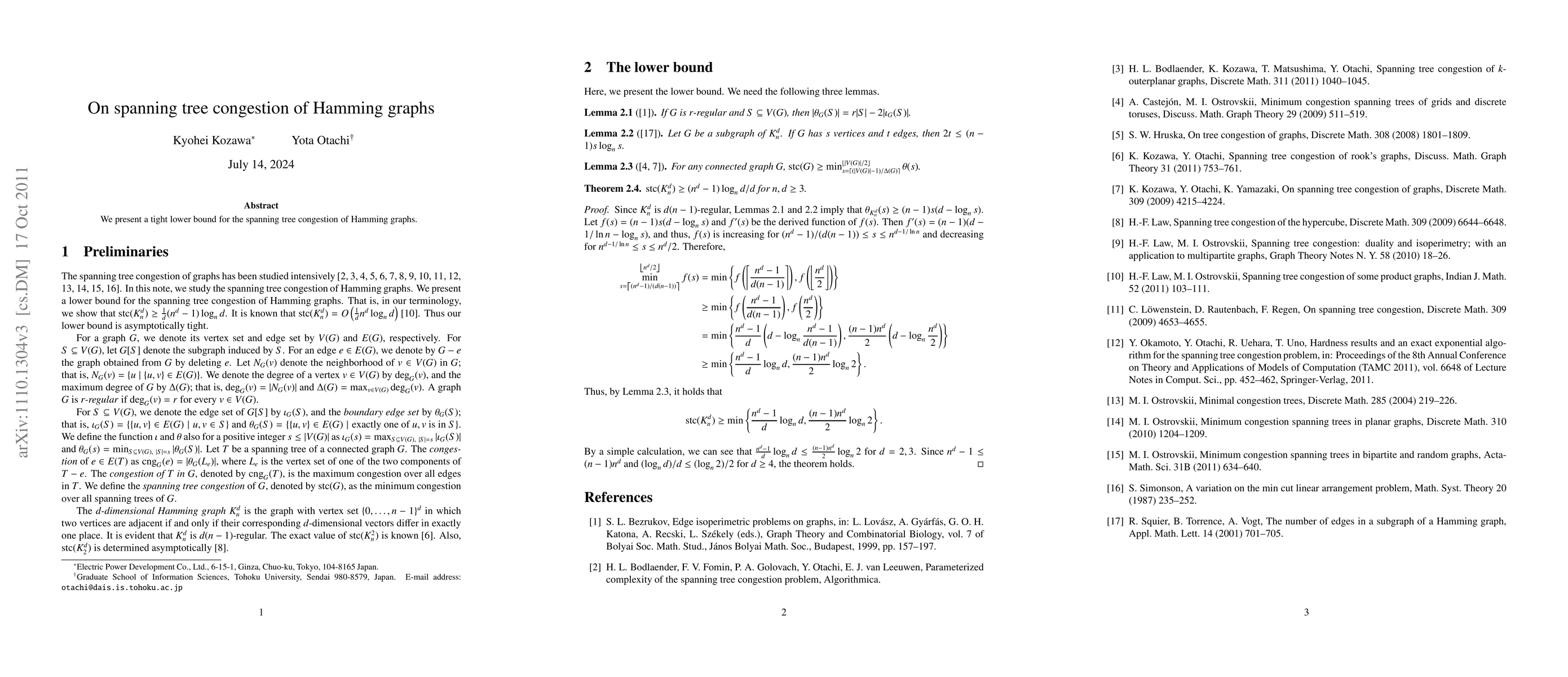 Summary: This paper establishes a tight lower bound for the spanning tree congestion in Hamming graphs, providing a precise measure of how efficiently these graphs can be used to construct spanning trees with minimal edge usage.