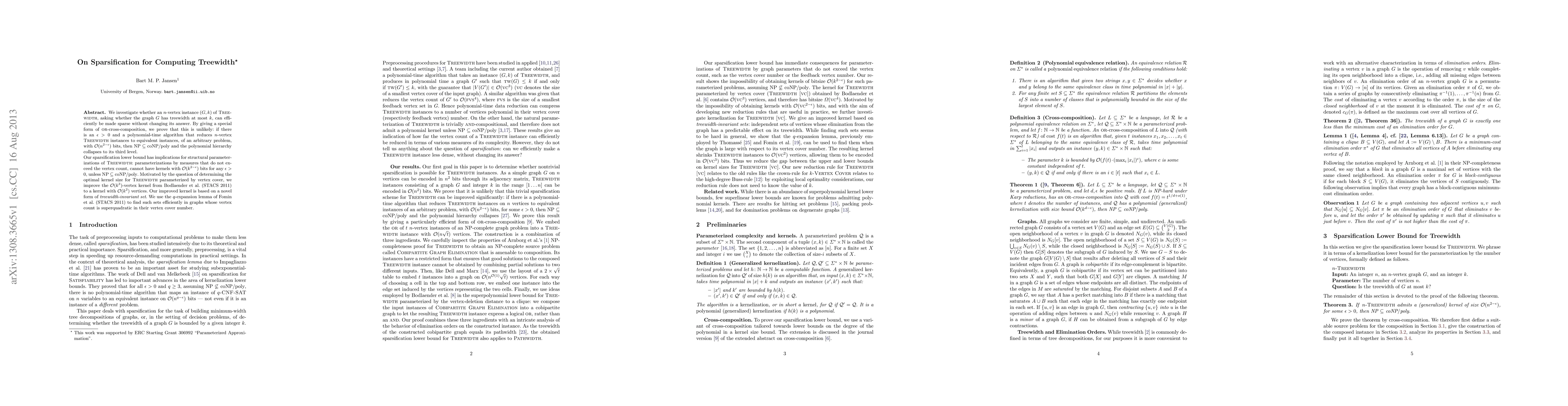 We investigate whether an n-vertex instance (G,k) of Treewidth, asking whether the graph G has treewidth at most k, can efficiently be made sparse without changing its answer. By giving a special form of OR-cross-composition, we prove that this is unlikely: if there is an e > 0 and a polynomial-time algorithm that reduces n-vertex Treewidth instances to equivalent instances, of an arbitrary problem, with O(n^{2-e}) bits, then NP is in coNP/poly and the polynomial hierarchy collapses to its third level. Our sparsification lower bound has implications for structural parameterizations of Treewidth: parameterizations by measures that do not exceed the vertex count, cannot have kernels with O(k^{2-e}) bits for any e > 0, unless NP is in coNP/poly. Motivated by the question of determining the optimal kernel size for Treewidth parameterized by vertex cover, we improve the O(k^3)-vertex kernel from Bodlaender et al. (STACS 2011) to a kernel with O(k^2) vertices. Our improved kernel is based on a novel form of treewidth-invariant set. We use the q-expansion lemma of Fomin et al. (STACS 2011) to find such sets efficiently in graphs whose vertex count is superquadratic in their vertex cover number.