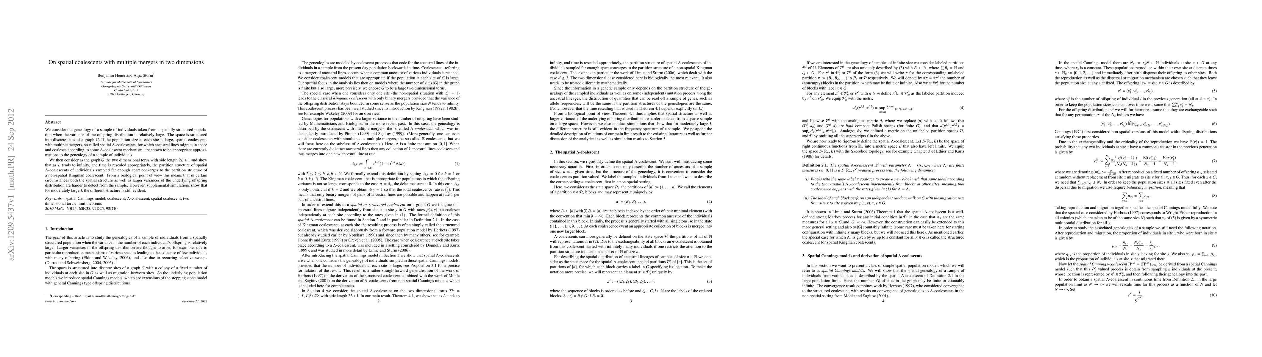 This paper studies spatial coalescents with multiple mergers in two-dimensional populations, showing that under large variances in offspring distribution, spatial Lambda-coalescents approximate the genealogy of spatially structured populations. As the population size increases, these coalescents converge to a non-spatial Kingman coalescent, indicating reduced detectability of spatial structure and offspring variance, though simulations reveal a retained distinct structure for moderately large populations.