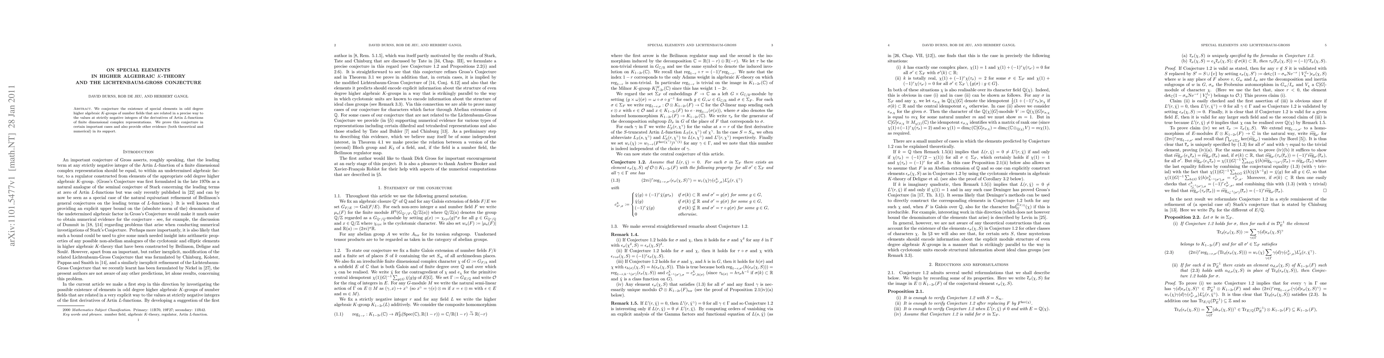 Researchers prove the existence of special elements in higher algebraic K-groups related to Artin L-functions, providing new evidence for the Lichtenbaum-Gross Conjecture.