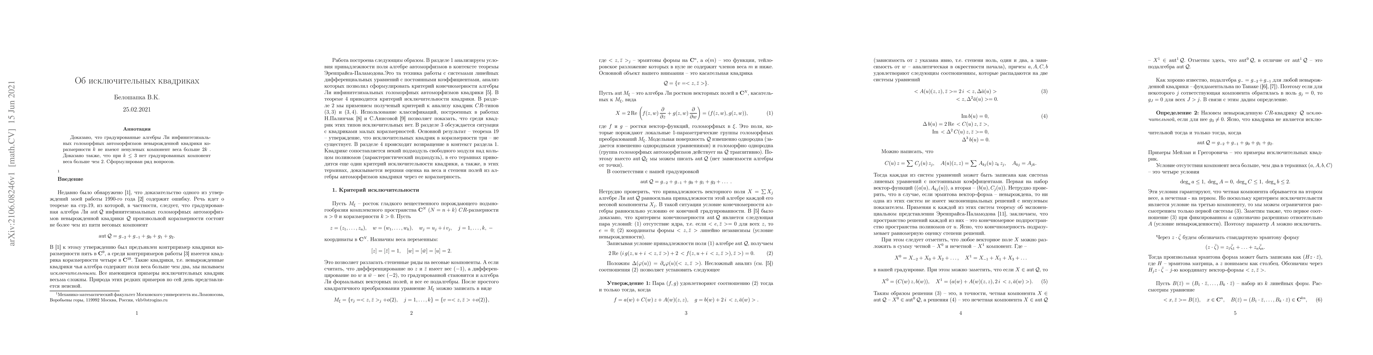 It is proved that the graded Lie algebras of infinitesimal holomorphic automorphisms of nondegenerate quadric of codimension k do not have nonzero graded components of weight greater than 2k. It is also proved that for $k = 3$ and for RAQ-quadrics there are no components of weight greater than 2.