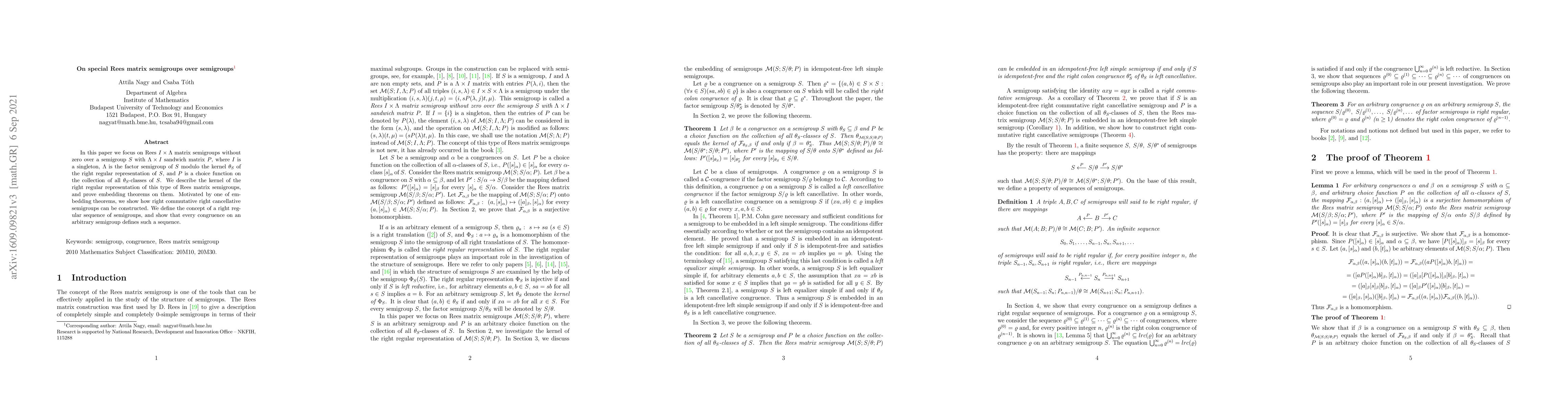 In this paper we focus on Rees $I\times \Lambda$ matrix semigroups without zero over a semigroup $S$ with $\Lambda\times I$ sandwich matrix $P$, where $I$ is a singleton, $\Lambda$ is the factor semigroup of $S$ modulo the kernel $\theta_S$ of the right regular representation of $S$, and $P$ is a choice function on the collection of all $\theta _S$-classes of $S$. We describe the kernel of the right regular representation of this type of Rees matrix semigroups, and prove embedding theorems on them. Motivated by one of embedding theorems, we show how right commutative right cancellative semigroups can be constructed. We define the concept of a right regular sequence of semigroups, and show that every congruence on an arbitrary semigroup defines such a sequence.