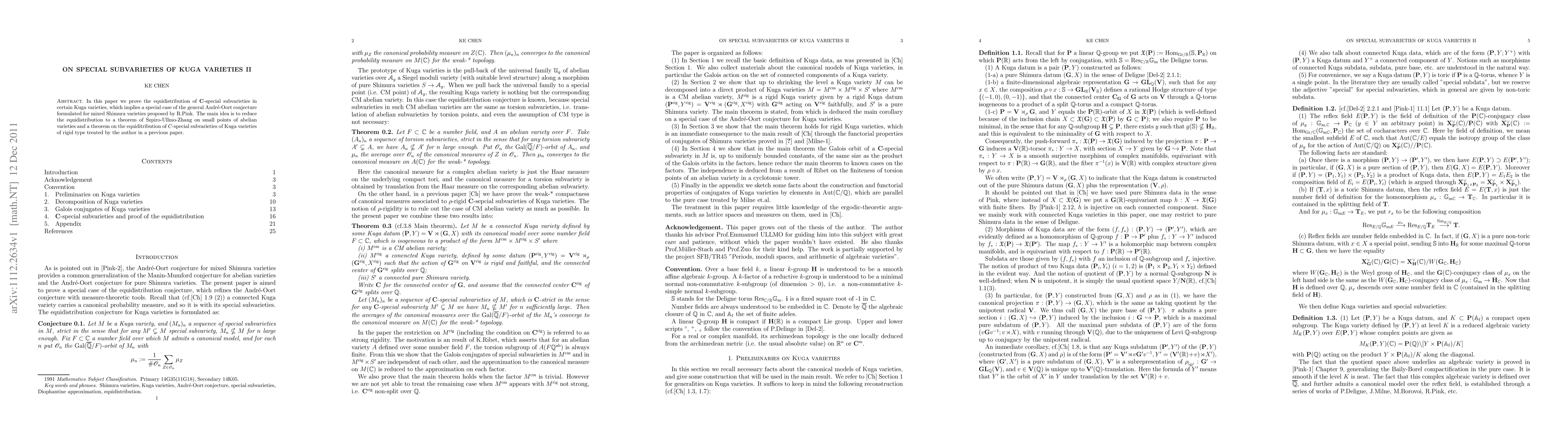 This paper establishes the equidistribution of $\Cbf$-special subvarieties in certain Kuga varieties, supporting a case of the André-Oort conjecture for mixed Shimura varieties. The proof leverages results on small points in abelian varieties and previous findings on the equidistribution of $C$-special subvarieties.